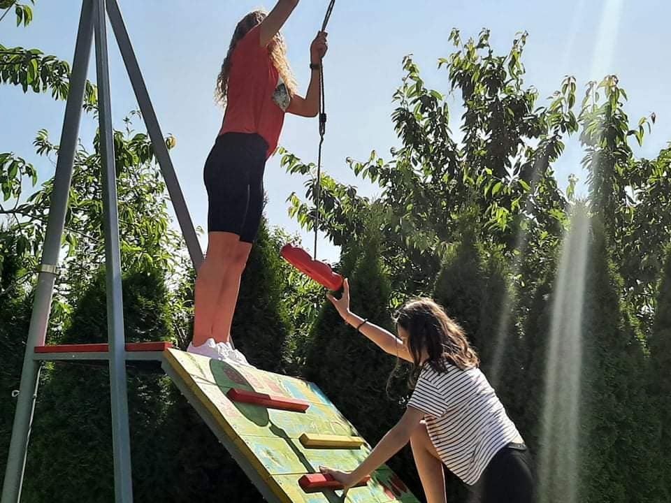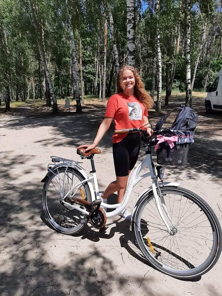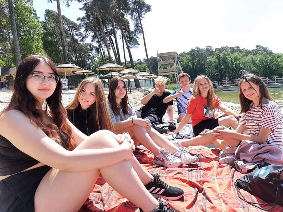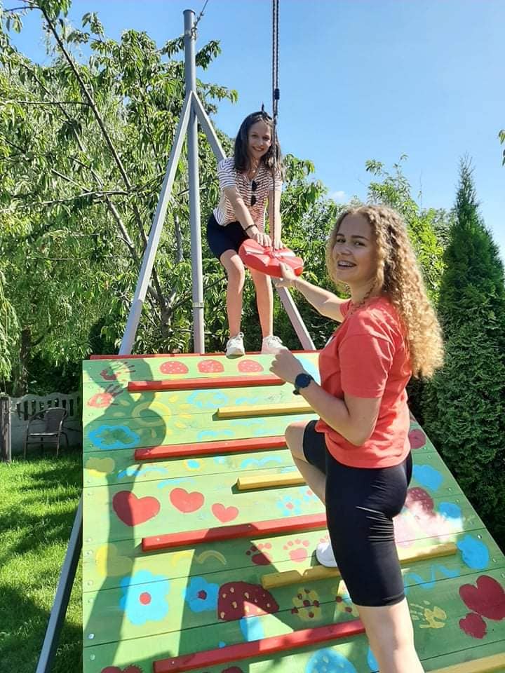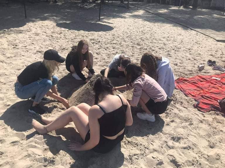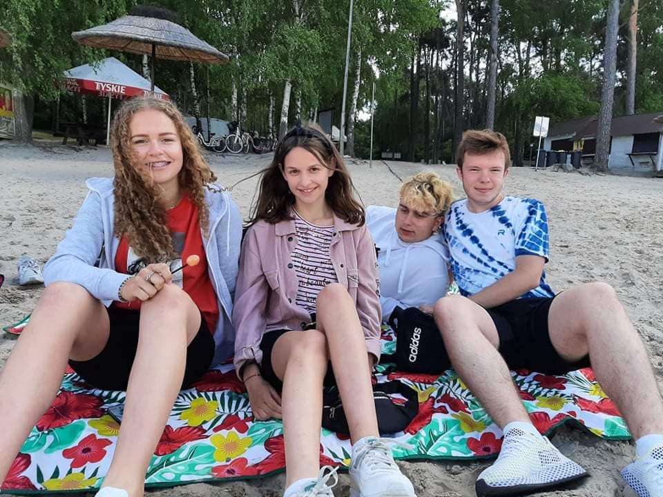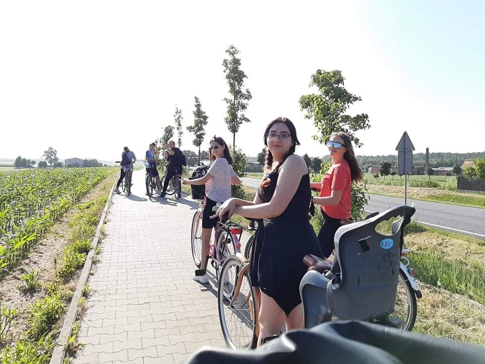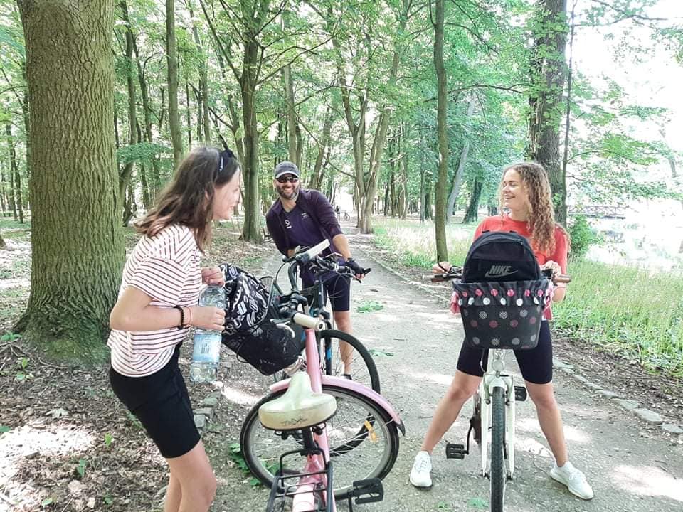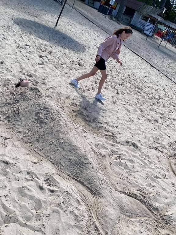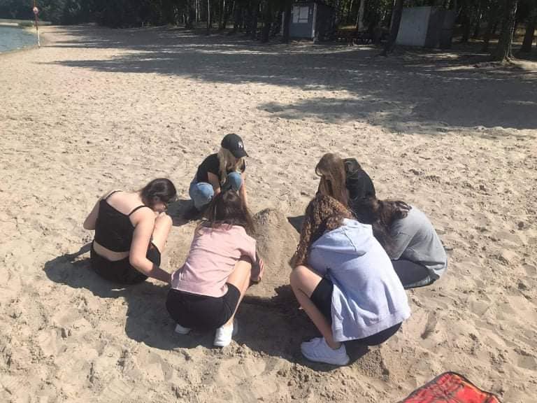 W Gołuchowie, po posiłku, wszyscy "leżakowali" na piasku i pod piaskiem. 😉😃 W drodze powrotnej rowerzyści zrobili najazd na dom rodzinny pani Darii, gdzie ochoczo skorzystali z tyrolki.