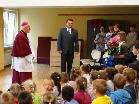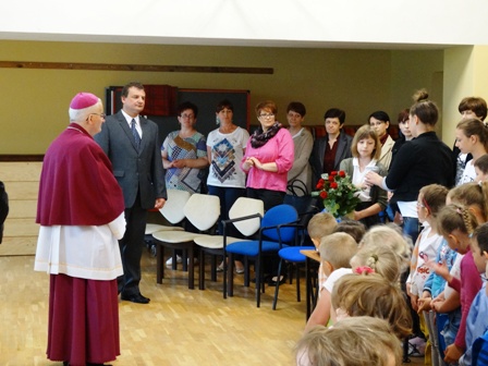 Niecodzienną wizytę przeżyli uczniowie i pracownicy Zespołu Szkół w Karminie. Dnia 28.05.2014 r do placówki zawitał Biskup Pomocniczy Teofil Wilski. Biskup został przywitany pieśnią najmłodszych wychowanków. Przygotowana została prezentacja dotycząca miejsowości Karmin - zarówno Parafii jak i historii Szkoły. Następnie odbyło się spotkanie z pracownikami szkoły,podczas którego Biskup podziękował za ich codzienny trud.