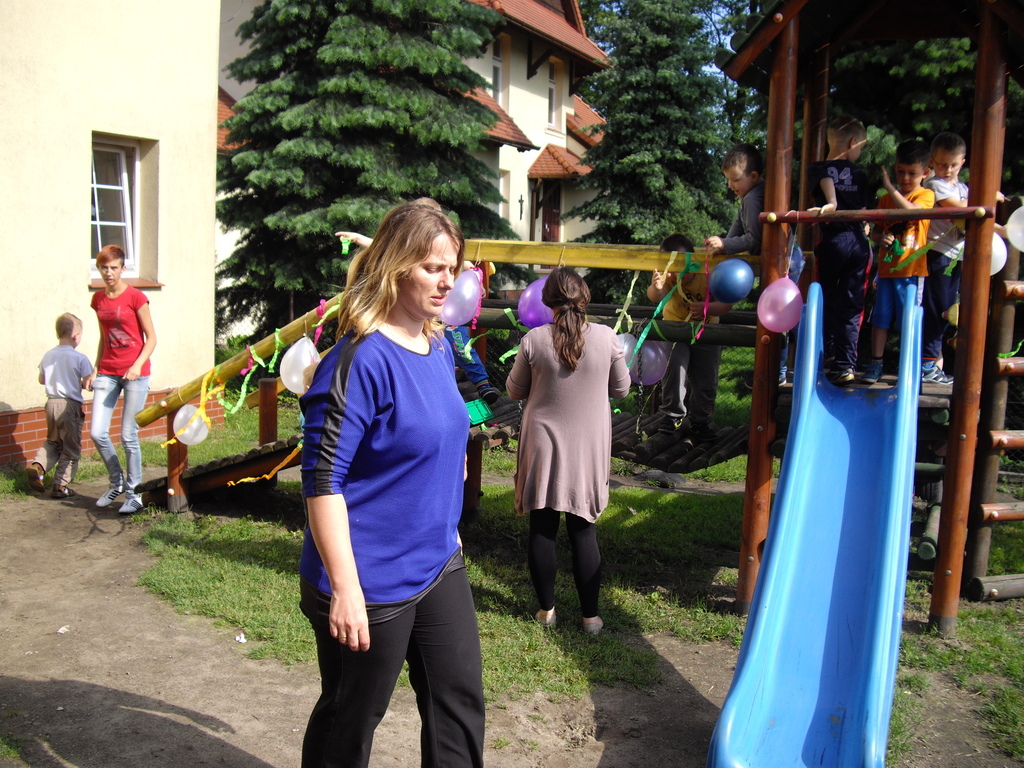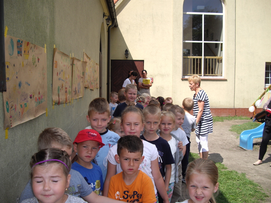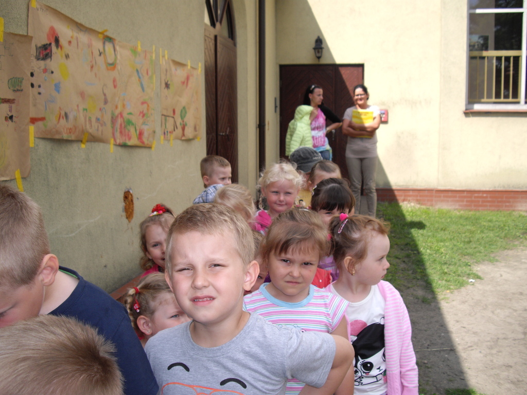 -Przygotowanie wystawy prac na placu zabaw.