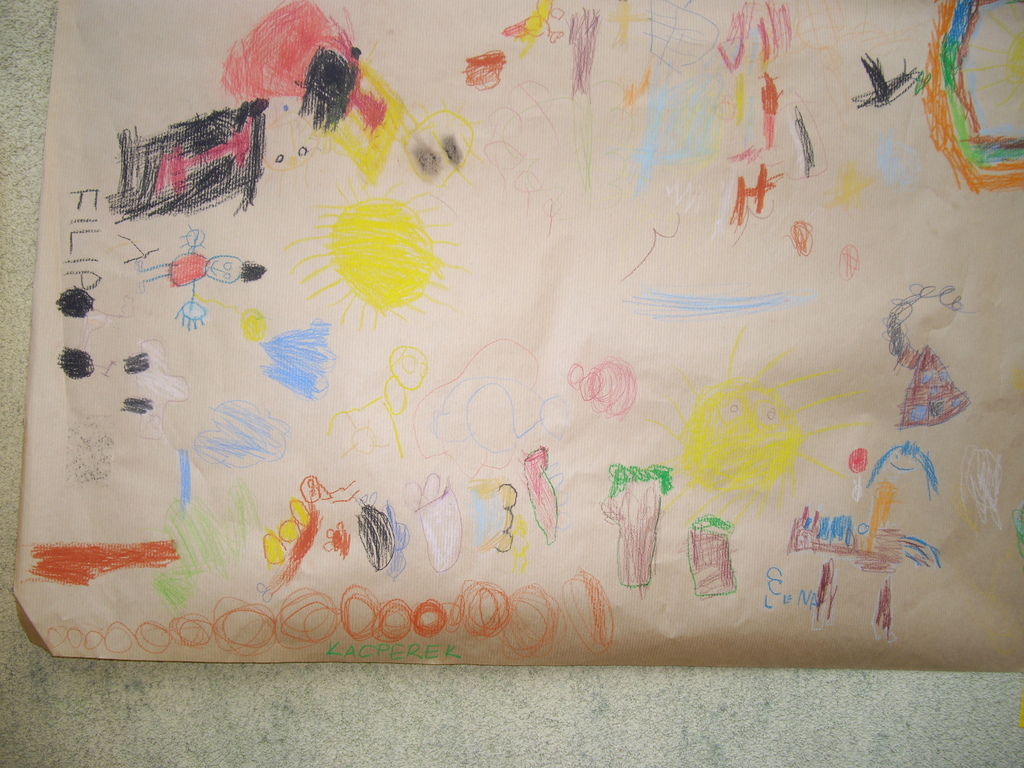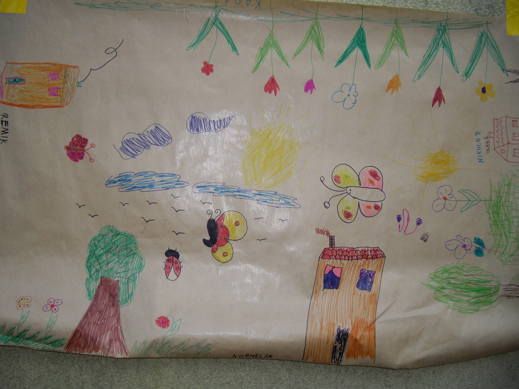 -,,Mój szczęśliwy dzień- wykonanie plakatów w grupach na dużych arkuszach papieru dowolną techniką - mamy pomagały, doradzały.
