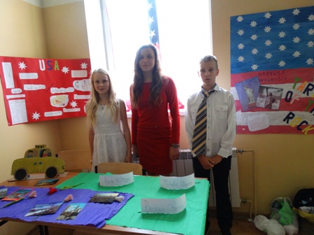 24 czerwca w naszej szkole odbył się dzień krajów anglojęzycznych, podczas którego wszyscy mieli okazję dowiedzieć się czegoś o kulturze, obyczajach oraz atrakcjach tych krajów. Dzieci mogły obejrzeć prezentacje multimedialne przygotowane przez uczniów klasy piątej na temat najbardziej znanych państw, w których używa się języka angielskiego. Ponadto uczniowie z klasy czwartej przygotowali plakaty na temat państw Zjednoczonego Królestwa Wielkiej Brytanii oraz flagi najbardziej charakterystycznych krajów anglojęzycznych. Klasa szósta przygotowała stoiska brytyjskie, irlandzkie i amerykańskie, na których można było znaleźć przedmioty charakterystyczne dla danego kraju oraz najbardziej znane osoby pochodzące z tych państw, za które przebrani byli uczniowie. Wśród nich była para prezydencka Michelle i Barack Obama, Paris Hilton, piosenkarka Enya, Justin Bieber oraz księżna Kate. Dzieci miały także okazję spróbować koktajlu (specjału kuchni angielskiej) przygotowanego przez uczennice klasy VI. Na koniec wszystkie dzieci mogły wziąć udział w konkursach. Dla klas I-III odbył się konkurs kolorowania flagi brytyjskiej i amerykańskiej na czas. Zwyciężczynią konkursu została Klaudia Czarnecka z klasy III. Drugie miejsce przypadło Zuzannie Jankowskiej (klasa I), natomiast III miejsce zajęła Martyna Wawrzynowicz (klasa II). Wyróżniono także prace Sebastiana Poterka i Alana Antczaka (klasa II), którzy na czas zdążyli pokolorować swoje prace. Uczniowie klas IV-VI wzięli udział w konkursie na temat wiedzy o krajach anglojęzycznych. Pierwsze miejsce zdobyła Barbara Szymczak (klasa V). Na drugim miejscu uplasował się Tobiasz Stefaniak (klasa IV), natomiast III miejsce zajął Jan Jankowski (klasa VI). Wszystkim zwycięzcom gratulujemy. Dzieci z przedszkola i zerówki również uczestniczyły w konkursie kolorowania flagi irlandzkiej i kanadyjskiej.