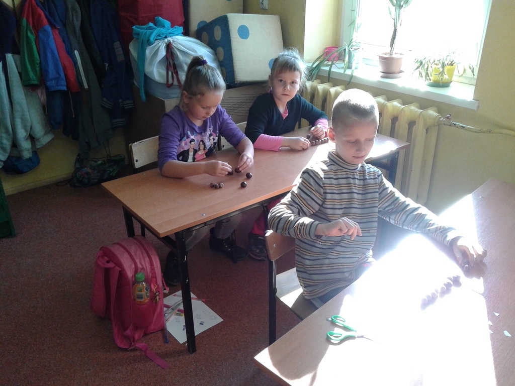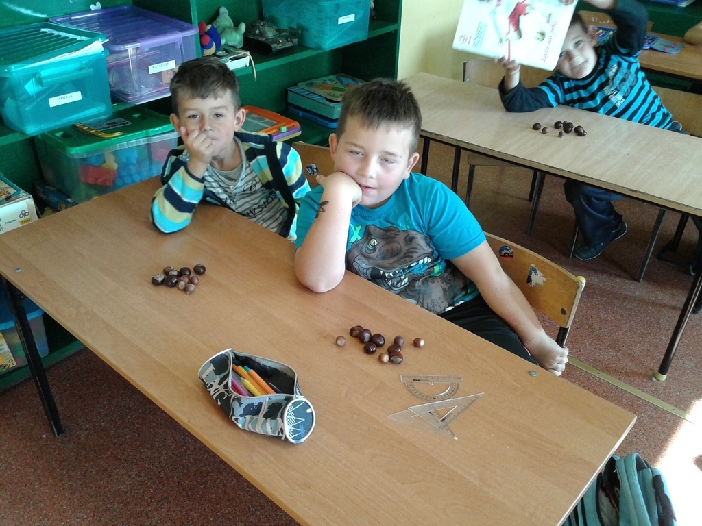 Nie opuszczamy oczywiście edukacji matematycznej i z naszej pobliskiej okolicy uzbieraliśmy masę kasztanów i żołędzi. Na nich uczymy się liczyć, doskonale się przy tym bawiąc.