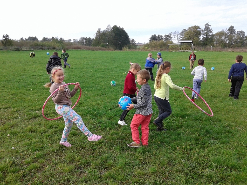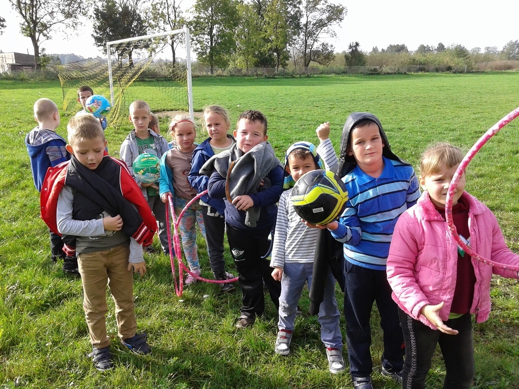Nasze pierwszaki do ostatnich chwil korzystają z pięknej pogody - bo w końcu sport to zdrowie!!! Gry i zabawy ruchowe to jest to, co lubimy najbardziej. Co z tego, że spodnie zielone - ważne, że był gol ! ! !