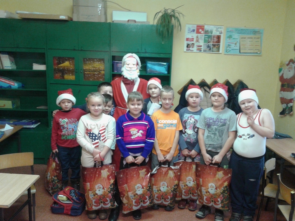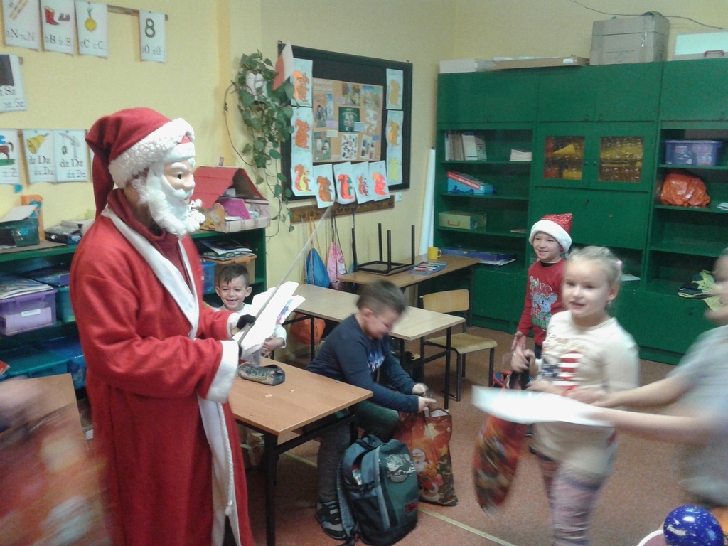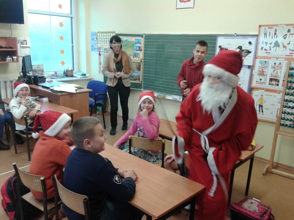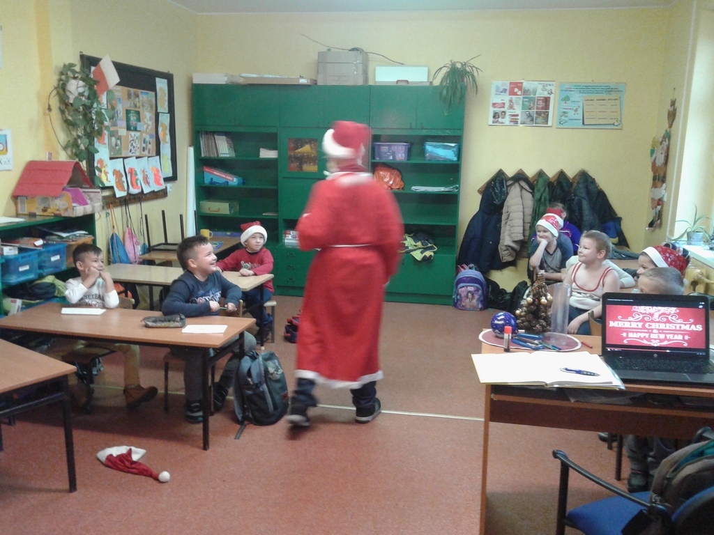W tym roku przypadł on akurat w sobotę. Wydawałoby się wiec, że ominie nas w szkole jego przeżywanie. Na szczęście dobre duchy, nie pozwoliły, aby szkolna społeczność ominęły piękne chwile, pojawił się Mikołaj wraz ze swoim pomocnikiem i obdarował wszystkie dzieci sporym upominkiem.