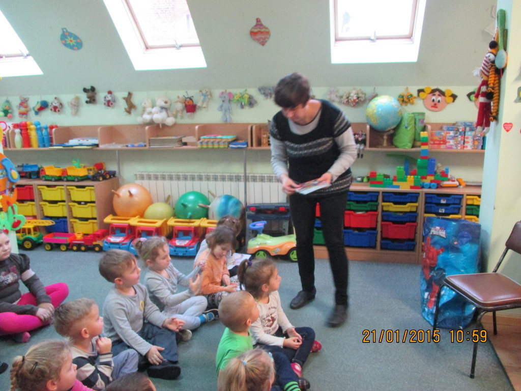 W środę 21 stycznia w przedszkolu miało miejsce ,,zagadkowe spotkanie". Dzieci najpierw posłuchały głośnego czytania bajki o podstępnym Gargamelu, którego pokonały odważne Smerfy, a następnie odgadywały zagadki dotyczące zwierząt i roślin. Przedszkolaki świetnie poradziły sobie z odpowiedziami, a w nagrodę otrzymały kolorowe książeczki do przeczytania z mamą lub tatą.