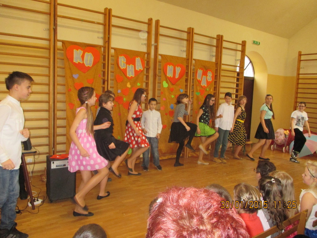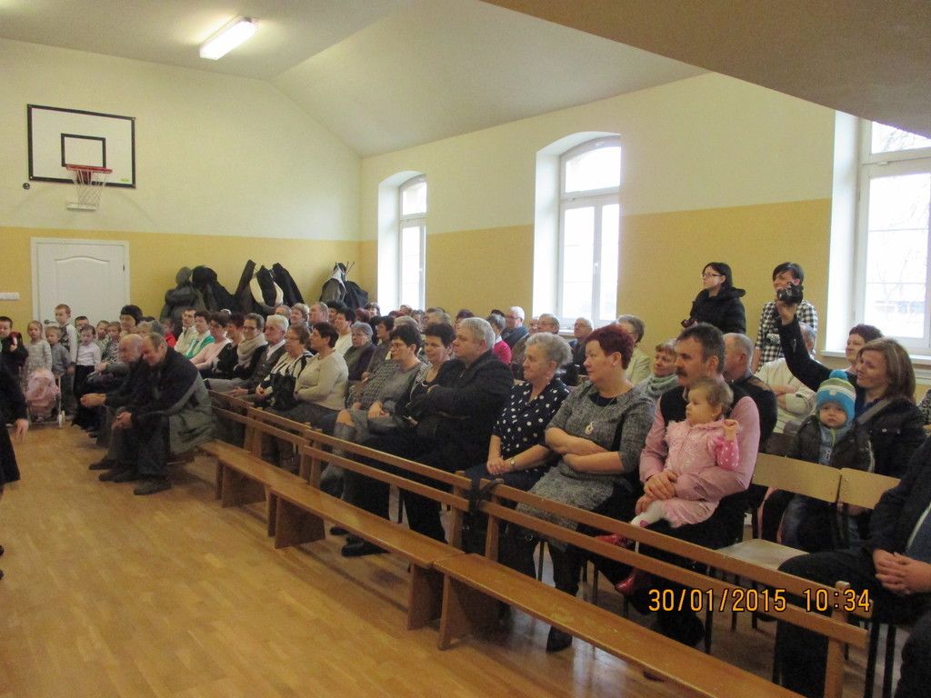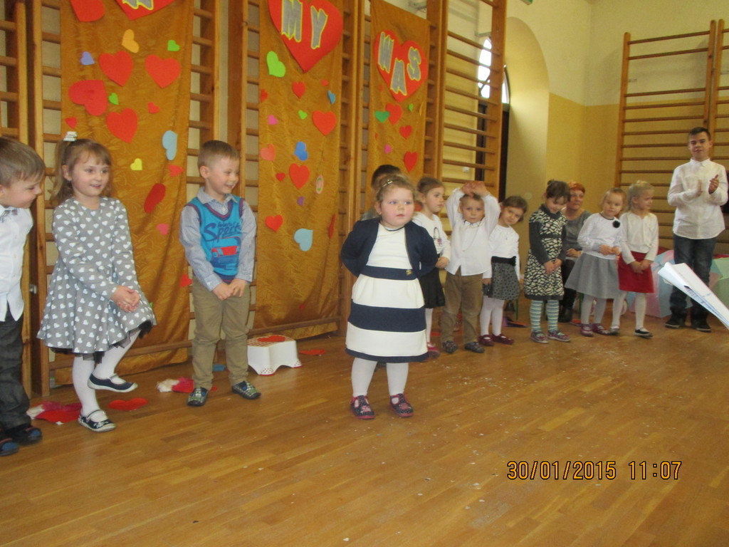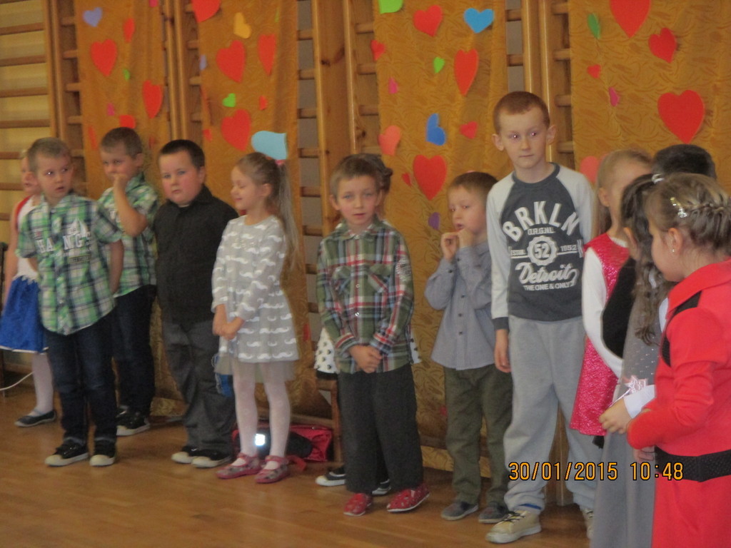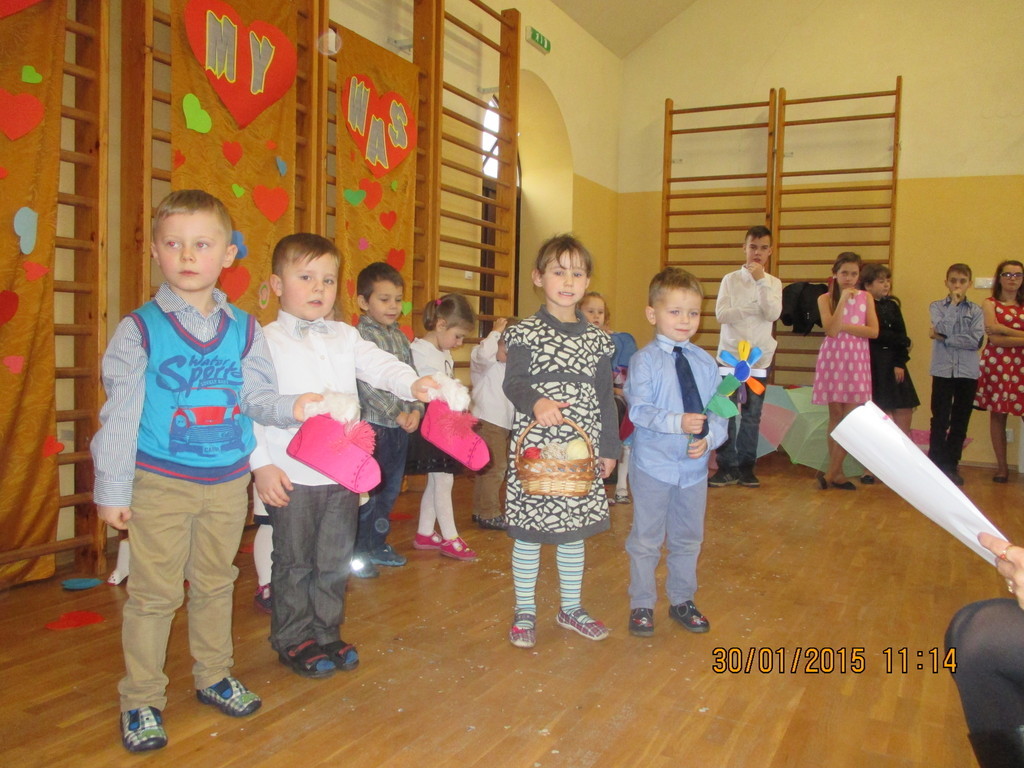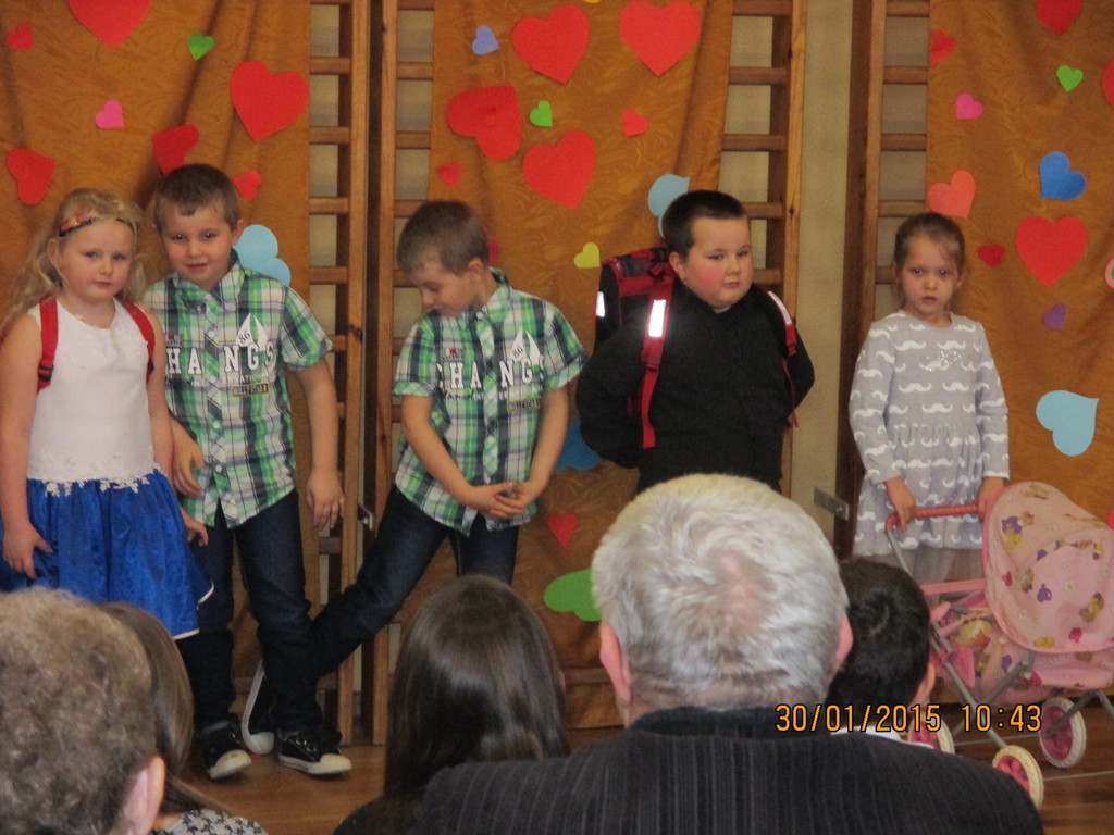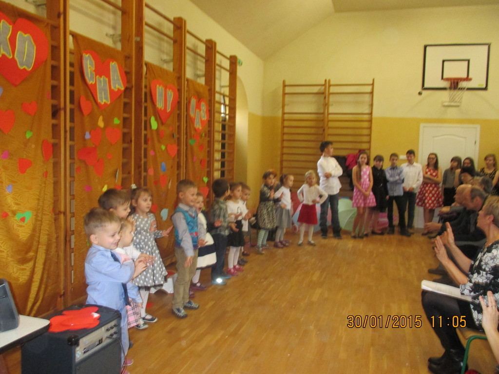 W piątek na sali w przedszkolu odbył się uroczysty Dzień Babci i Dziadka. Przedszkolaki przygotowały wierszyki i inscenizacje, a starsi uczniowie zaśpiewali znane piosenki z lat młodości babć i dziadków. Nie zabrakło oczywiście prezentów dla naszych miłych Gości. Zostali obdarowani laurkami, koralami i papierowymi krawatami oraz słodkimi, czekoladowymi serduszkami. Dziękujemy wszystkim Babciom i Dziadkom za przybycie na uroczystość.