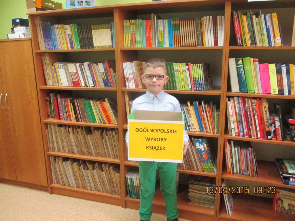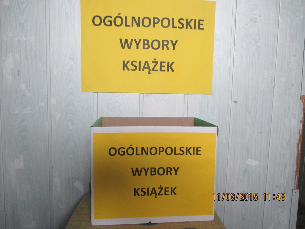 Uczniowie naszej szkoły wzięli udział w akcji Ogólnopolskie Wybory Książek. Uczestnicy głosowali na najciekawsze książki, które czytali w ciągu ostatnich dwóch lat. Dzięki tym wyborom nasza szkoła weźmie udział w losowaniu książek do biblioteki szkolnej.