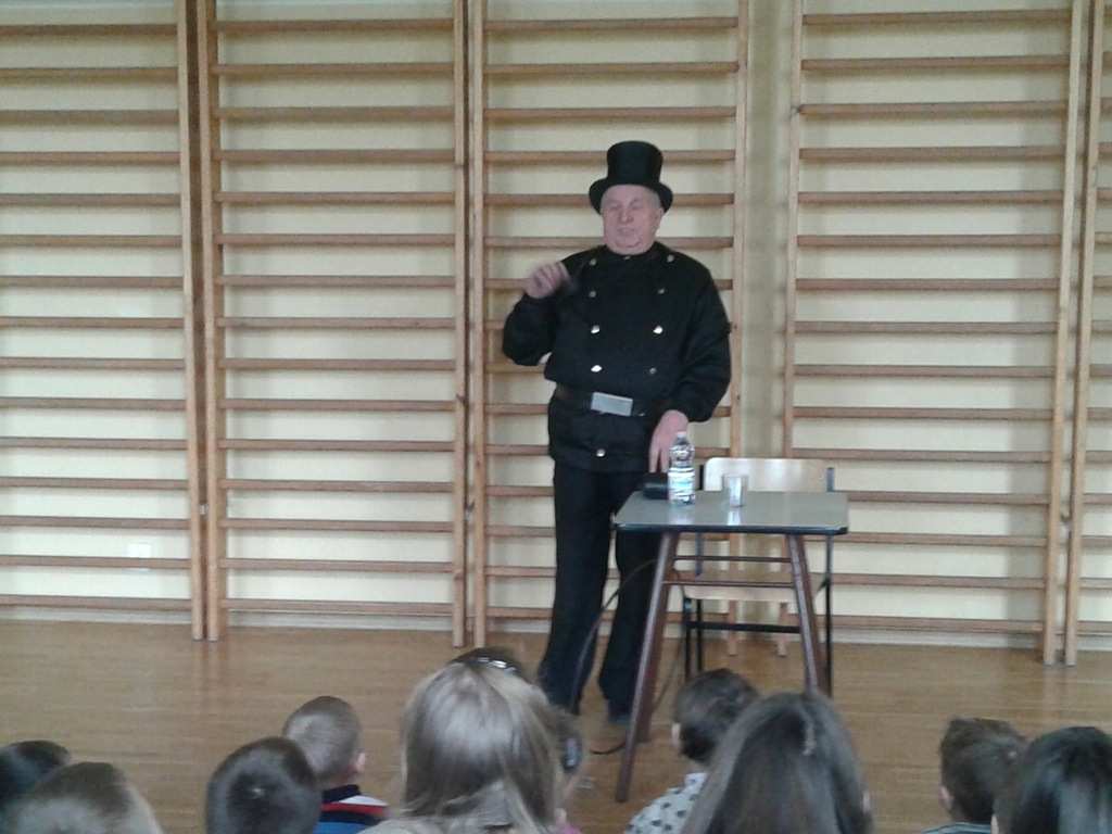 W naszej szkole i przedszkolu gościliśmy kominiarza. Dzieciom bardzo się podobało to spotkanie, podczas którego miały okazję zapoznać się ze strojem i sprzętem kominiarza. Z wielkim zainteresowaniem wysłuchały opowieści o trudach i niebezpieczeństwach jego pracy. Dzieci miały mnóstwo pytań do naszego gościa, dzięki którym uświadomiły sobie jak ważna jest praca kominiarza. Pan kominiarz opowiedział dzieciom o legendzie "Guzik na szczęście"