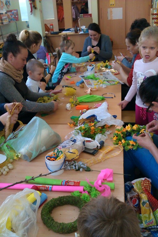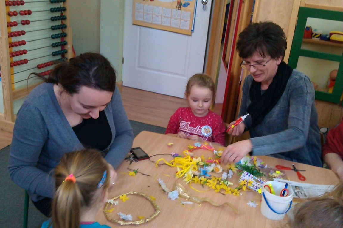 18 marca w przedszkolu w grupie 3-5 latków odbyły się zajęcia otwarte dla rodziców i dzieci. Tym razem dzieci wspólnie z rodzicami robiły wianki i gaiki na przyjście wiosny. Było przy tym wiele zabawy i uśmiechów.