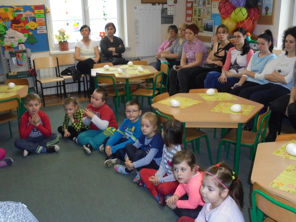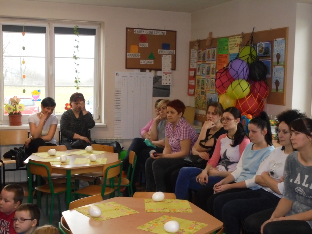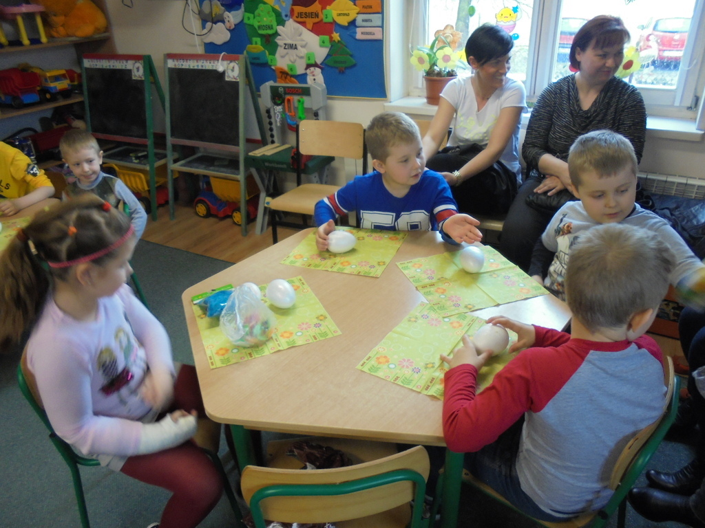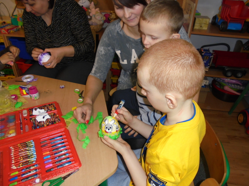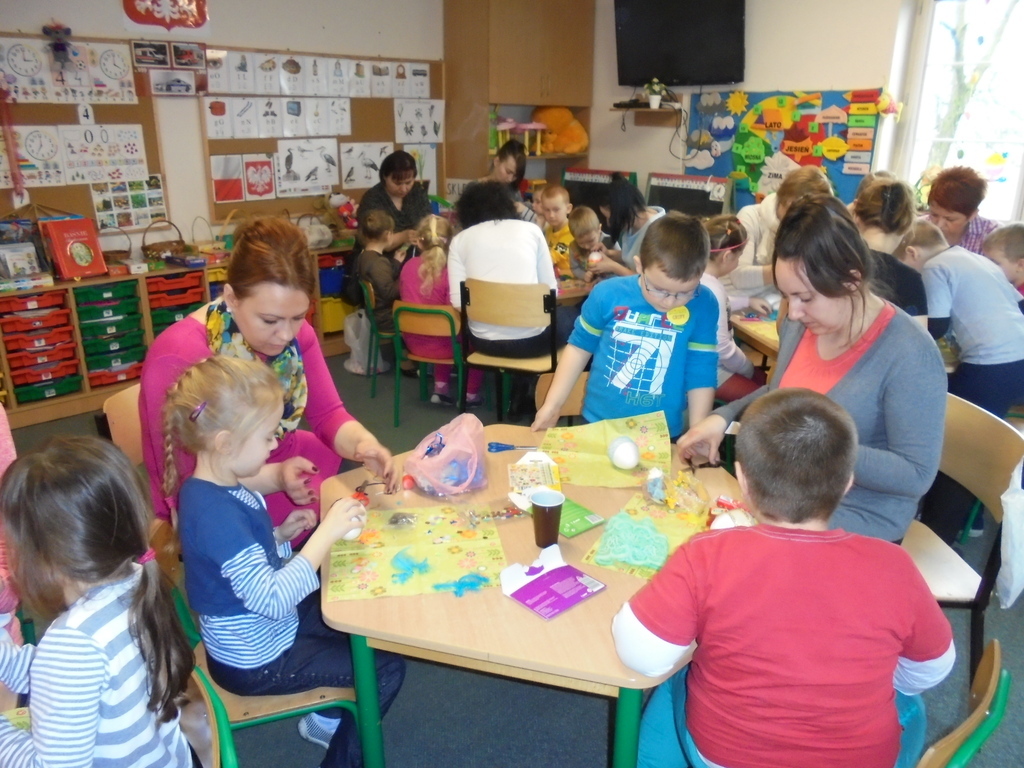 26 marca w przedszkolu odbyły się zajęcia otwarte dla rodziców pt. "WIELKANOCNA PISANKA". Dzieci wraz z rodzicami ozdabiały jajka, które zamieniły w piękne pisanki. Wszysycy bawili się przy tym świetnie i było dużo radości.