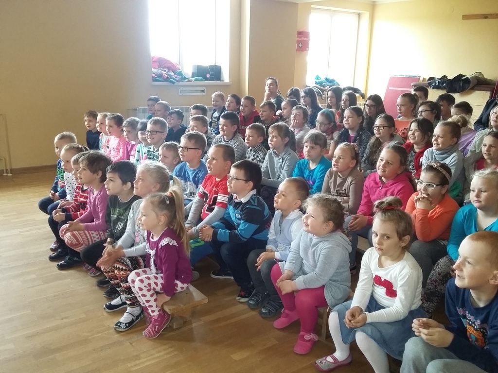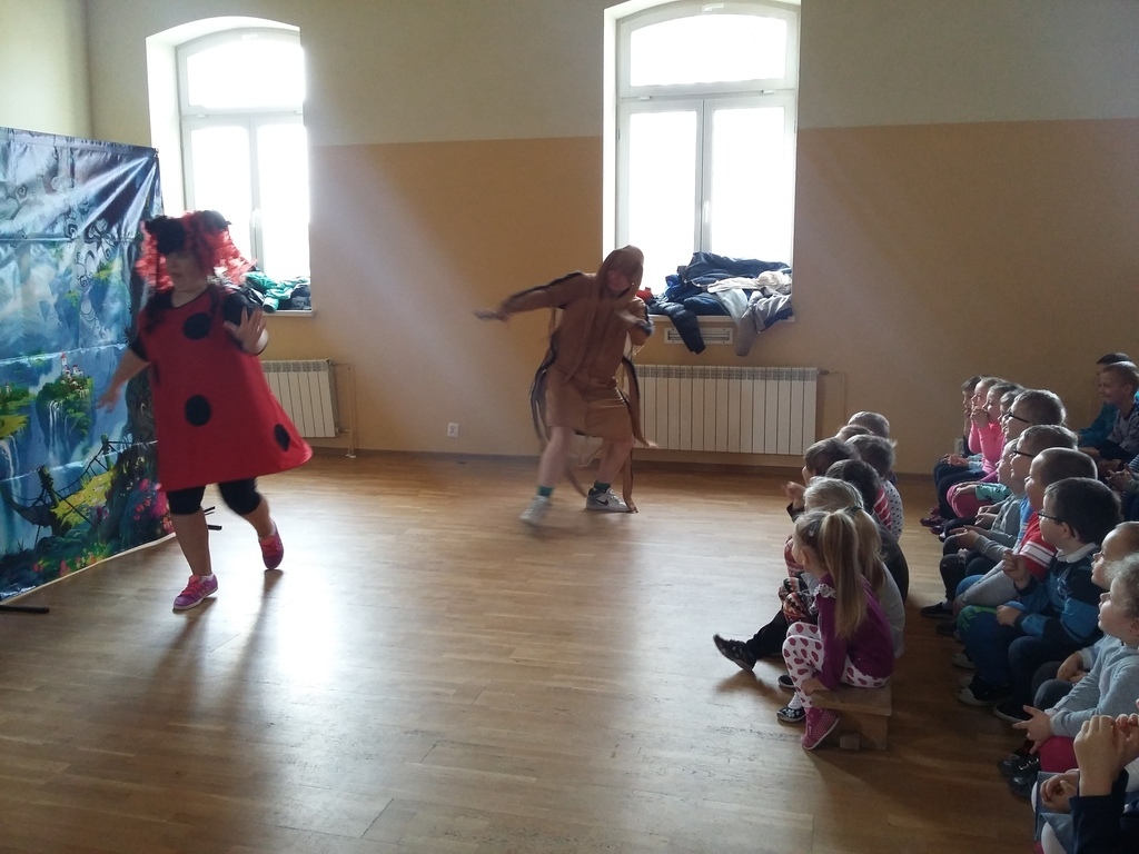 Dzisiaj o godzinie 8:00 nasze dzieci miały okazję uczestniczyć w przedstawieniu przygotowanym przez Grupę T z Torunia pt."Strach ma wielkie oczy". Do swej zwariowanej przestrzeni toruńscy aktorzy zaprosili nie tylko dzieci w wieku przedszkolym i szkolnym, ale także wszystkich tych, których nie przeraża potężna dawka dobrej zabawy.