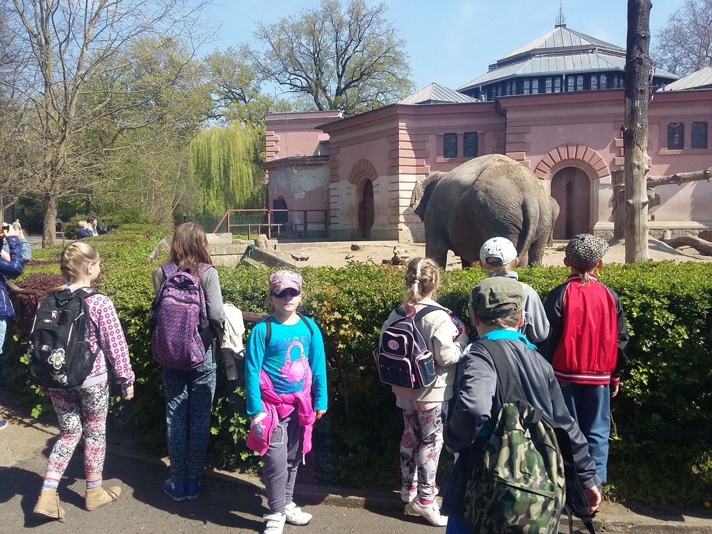 W radosnych nastrojach ruszyliśmy by oglądać żywe egzotyczne zwierzęta znane nam dotąd jedynie z książek i opowiadań. Odwiedziliśmy dom zebr, żyraf i kangurów. Ruszyliśmy na spotkanie ze słoniami, a zaraz potem mieliśmy okazję podziwiać drapieżne zwierzęta.Wielką atrakcją dla naszych dzieci okazała się wizyta w zwierzęcym dziedzińcu. To tam nasze dzieciaki zobaczyły takie zwierzęta jak: kozy, kucyki i osiołki. Mogły je pogłaskać i nakarmić suchym chlebem czy słomą. Po tylu wrażeniach i emocjach należał nam się krótki odpoczynek.Do szkoły wróciliśmy niezwykle zadowoleni, a dzieci jeszcze długo będą żyły wspomnieniami naszego wspólnego wyjazdu do zoo