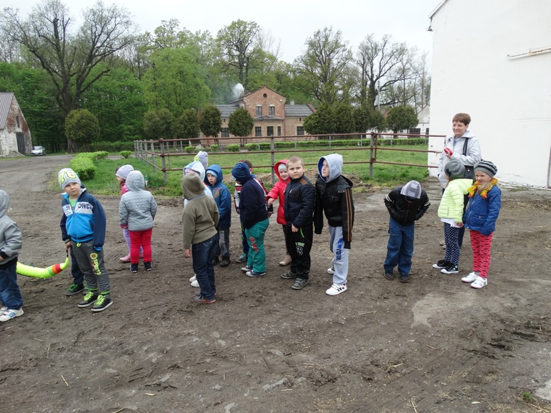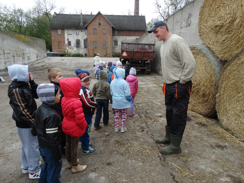 Dnia 29.04.2015r. przedszkolaki wybrały się z wizytą do Przedsiębiorstwa Rolnego w Karminie. Dzieci z radością przyglądały się mieszkającym w gospodarstwie zwierzętom oraz podziwiały znajdujące się tam maszyny rolnicze.