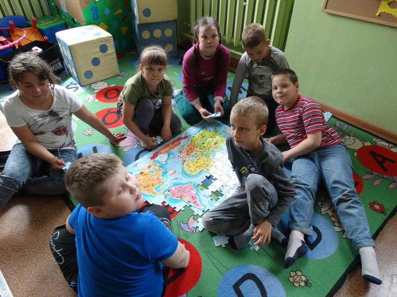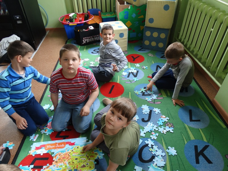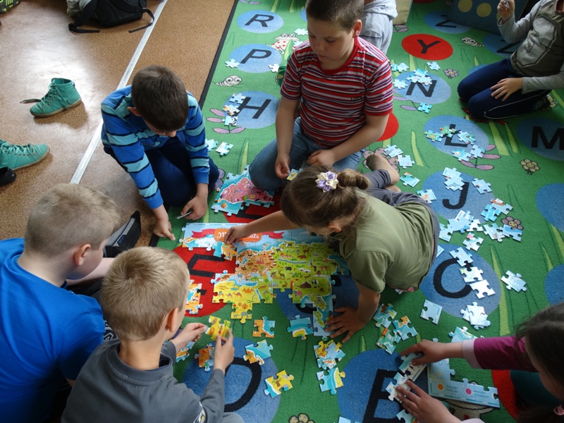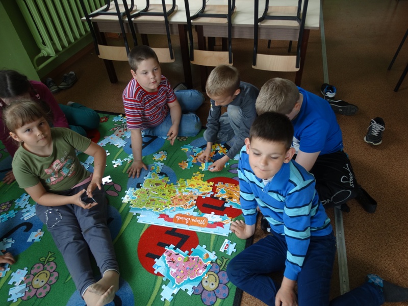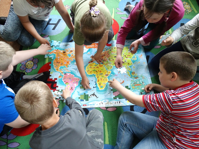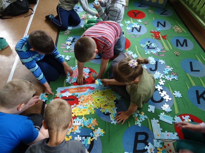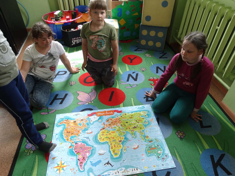 Podstawowym celem działalności świetlicy jest zapewnienie uczniom opieki po zajęciach lekcyjnych, dlatego też nasi nauczyciele dbają o to by w tym czasie stworzyć dzieciom warunki do odpoczynku, jak również do rozwijania ich zainteresowań. Wczoraj np. nasze dzieci układały puzzle, które po ułożeniu zamieniły się w mapę świata :)