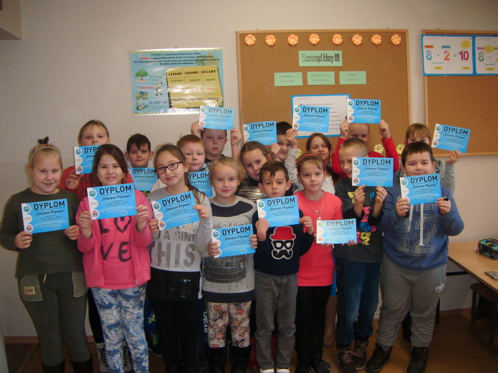Wczoraj dobieg końca udział naszych dzieci w projekcie "UMIEM PŁYWAĆ". Dzieci, które odbywały lekcje nauki pływania to uczniowie klasy II oraz III. Udział w zajęciach był nieodpłatny :) teraz pozostaje czekać na koleją edycję projektu, gdyż dzięki udziałowi w zajęciach dzieci mogą pochwalić się dużymi umiejętnościami w pływaniu :)
