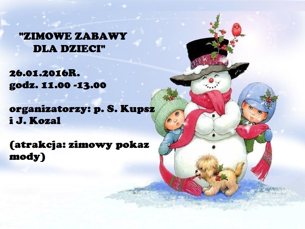godz. 1100-1300 ZIMOWE ZABAWY DLA DZIECI (zimowy pokaz mody)