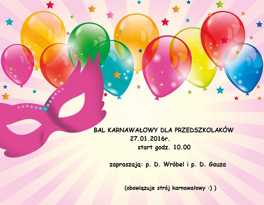 godz. 1000 -1200 BAL KARNAWAŁOWY dla przedszkolaków