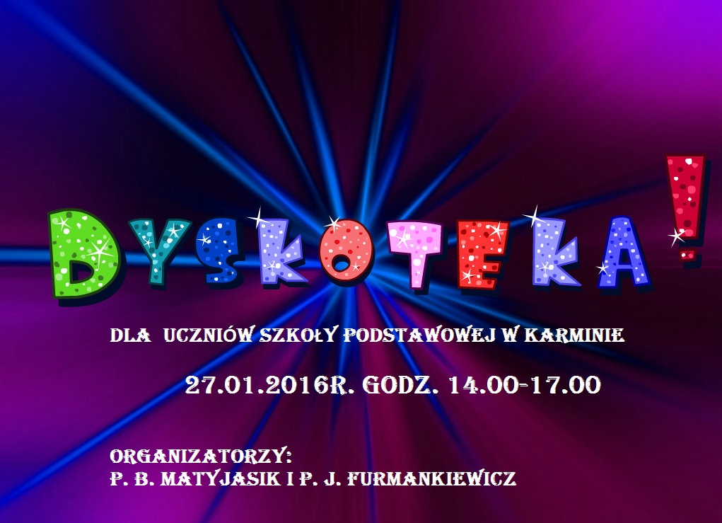 godz. 1400 - 1700 DYSKOTEKA dla uczniów szkoły podstawowej
