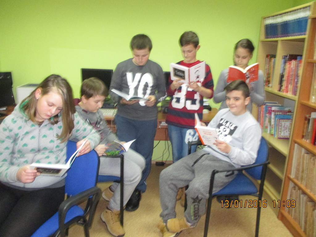 Nasi uczniowie postanowili czas wolny podczas ferii wykorzystać na przeczytanie ciekawych książek. Udali się po nie do szkolnej biblioteki. Największym zainteresowaniem cieszyły się wszystkie części "Mikołajka", dalsze losy Ani z Zielonego Wzgórza, "Chłopcy z Placu Broni" oraz "W 80 dni dookoła świata".
