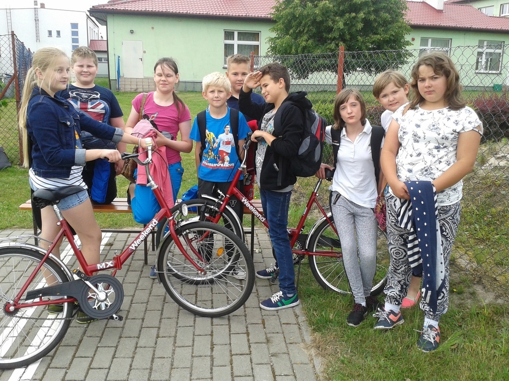14 czerwca uczniowie kl. IV oraz V wybrali się wraz z panią Aliną Tanaś na wycieczkę rowerową do Broniszewic. Znajduje się tam bowiem "Miasteczko rowerowe", w którym dzieci zaliczyły egzamin by zdobyć kartę rowerową :) "Miasteczko rowerowe" posiada właściwie oznakowane rondo, skrzyżowanie z sygnalizacją świetlną oraz ze strzałkami do warunkowej jazdy, ósemkę, przejścia dla pieszych, znaki stop ustąp pierwszeństwa. Dzieci wróciły z wycieczki pełne wrażeń oraz zadowolone ze zdania egzaminu.
