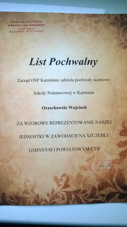 Wojciech Orzechowski - uczeń klasy IV - zajął II miejsce w Powiatowych Zawodach Młodzieżowych Druzyn Pożarniczych wg CTIF.