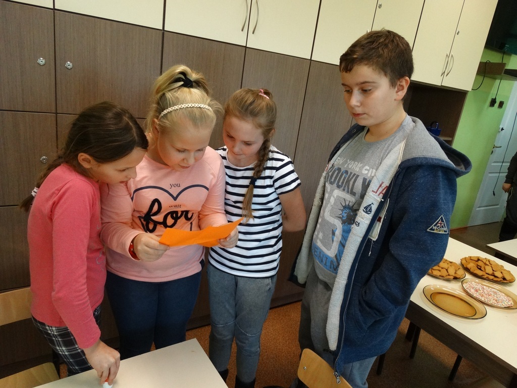 W poniedziałek mieli bowiem okazję wziąć udział w zabawach mikołajkowych, zorganizowanych przez Panią Asię oraz Panią Sarę, a dzięki temu poczuć świąteczny klimat. Na każdą klasę czekał list od Świętego Mikołaja, a w nim…specjalne zadanie! Trzeba było zapakować prezenty, ozdobić świąteczne skarpety, rozwiązać zagadki, skleić jak najdłuższy łańcuch a także uruchomić wyobraźnię i przygotować przepiękne gwiazdki z papieru. Nasze dzieci poradziły sobie doskonale, więc i nagroda musiała być wyjątkowa! Oprócz nagród zakupionych z funduszy SKO, uczniowie własnoręcznie ubrali szkolną choinkę oraz udekorowali świąteczne ciasteczka, które na zakończenie zabaw znalazły się w ich brzuszkach. Zapach pierników i mandarynek zostanie z nimi aż do świąt, a wspólnie przyozdobiona choinka będzie przepiękną ozdobą naszej szkoły.