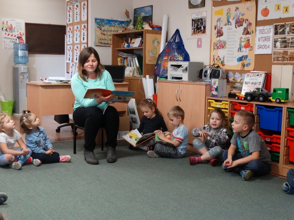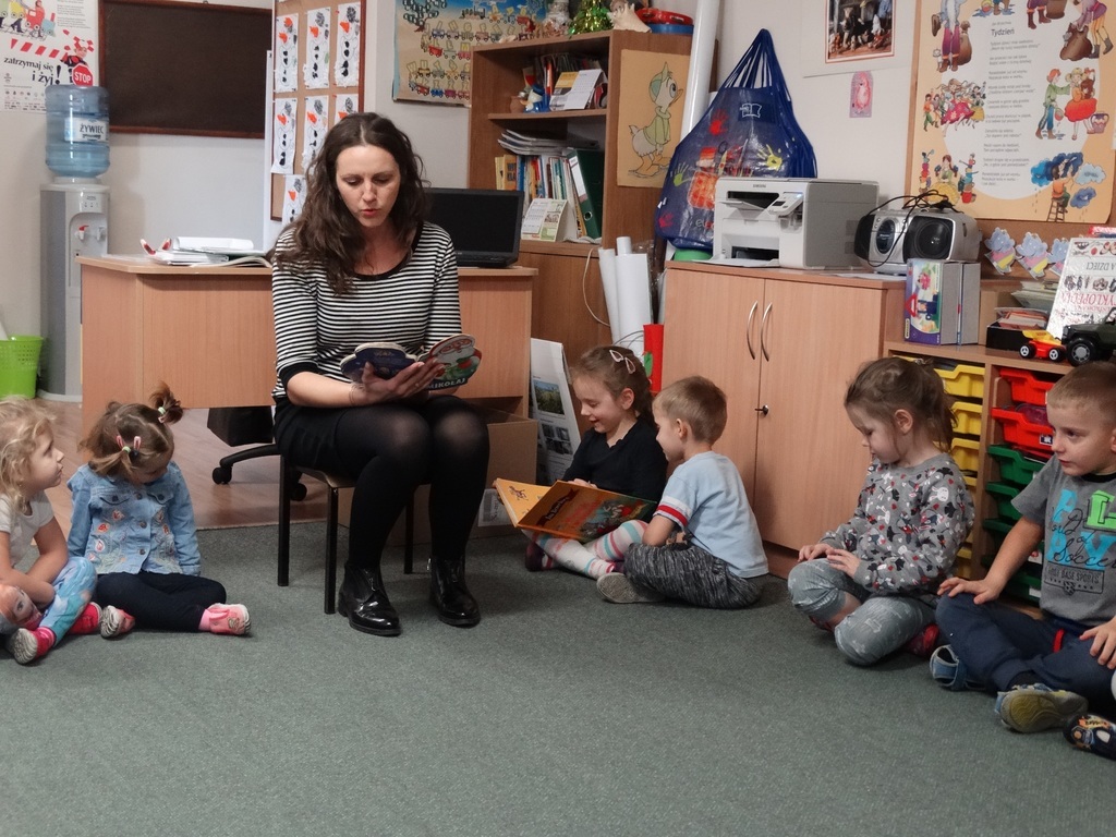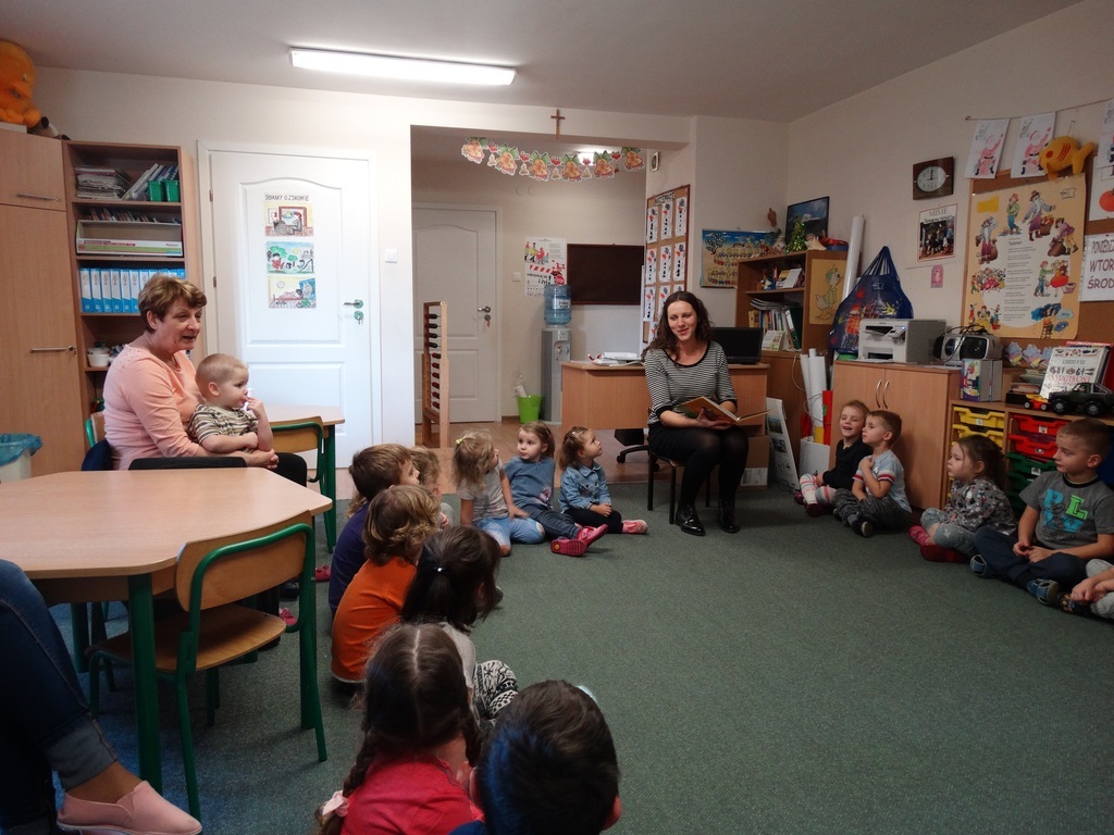 Systematyczny kontakt dziecka z książką aktywizuje jego rozwój intelektualny i emocjonalny, budzi wrażliwość estetyczną, sprzyja rozwijaniu postaw twórczych oraz wyzwala ekspresję dziecięcą. Nasze działania wspierane są przez zaproszonych do przedszkola gości. Tym razem do naszego przedszkola zawitały aż dwie mamy: mama Nataszki oraz mama Sebastiana i Oliwiera. Serdecznie dziękujemy mamom za poświęcony czas i piękne bajki i opowiadania