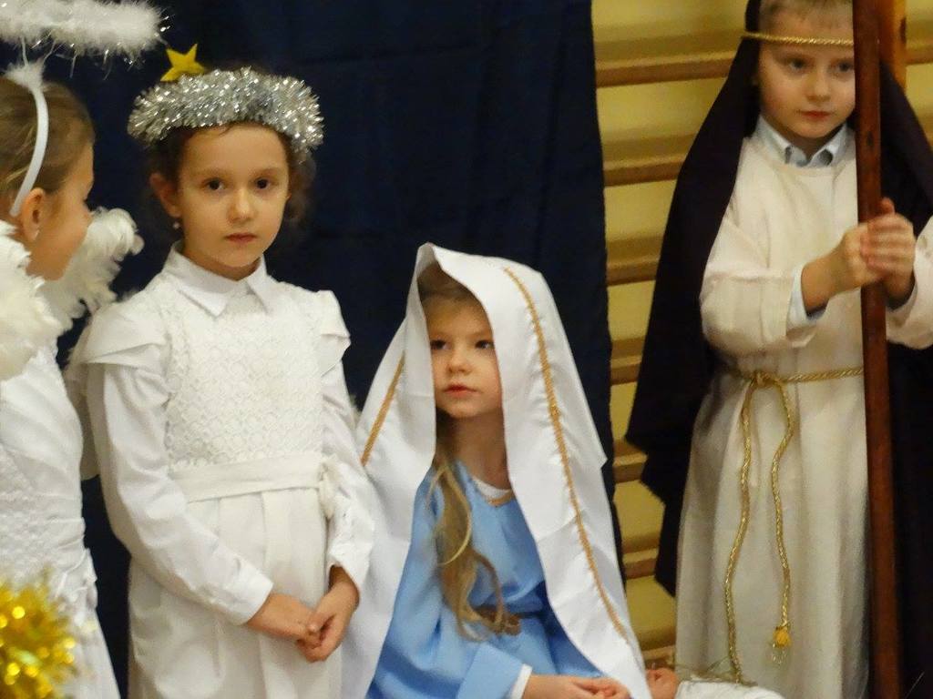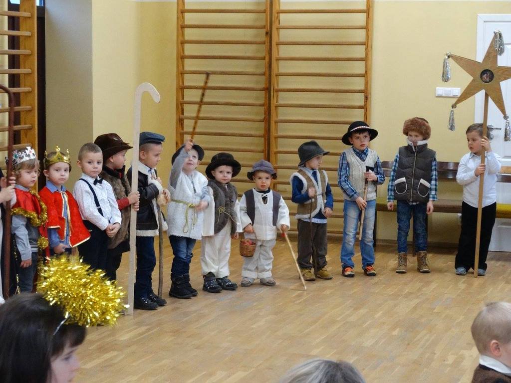Coroczną tradycją naszego przedszkola jest przygotowywanie przez dzieci Jasełek. Już od kilku dni nauczyciele wspólnie z przedszkolakami przygotowywali różnorodne stroje i dekoracje. Dzieci uczyły się wyznaczonych ról oraz tradycyjnych kolęd. Na jasełkowe spotkania zaproszono najbliższych członków rodzin naszych przedszkolaków. Piękne scenografie i kolorowe stroje sprawiły, że rodzice i zaproszeni goście z zainteresowaniem słuchali małych aktorów. Jasełkowa szopka miała tradycyjną obsadę. Była: Maryja, św. Józef, malutkie dzieciątko Jezus, aniołowie, trzej królowie i pastuszkowie. Po występach do naszych przedszkolaków przybył Gwiazdor, który wręczył im prezenty. Wystawione Jasełka, wprawiły wszystkich w wyjątkowy świąteczny nastrój, o którym przez cały następny rok, będą nam przypominały pamiątkowo wykonane zdjęcia.