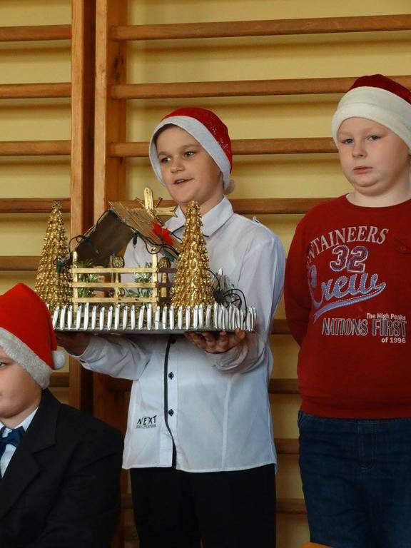 Wielu dorosłych przyzna, że wraz z upływem czasu, czar świąt znika przykryty mgłą codziennych obowiązków. Nie da się ukryć, że niejeden chciałby wrócić do lat młodości, kiedy na każdym kroku zauważało się świąteczne akcenty, które łatwiej trafiały do świadomości i rozsiewały w niej miłą atmosferę oczekiwania. Wielu z nas zapewne ciepło wspomina szkolne jasełka organizowane każdego roku, z okazji nadchodzących świąt. Całe szczęście owa tradycja nie znika. W tym roku uczniowie z klasy III oraz V, pod kierownictwem pani Joanny Kozal oraz pani Sary Kupsz, przygotowali wspaniałe Jasełka, na które zaprosili nie tylko swoich kolegów i nauczycieli, lecz także swoich rodziców. Dzięki tym wstępom w szkole dało się odczuć magiczną, świąteczną atmosferę.