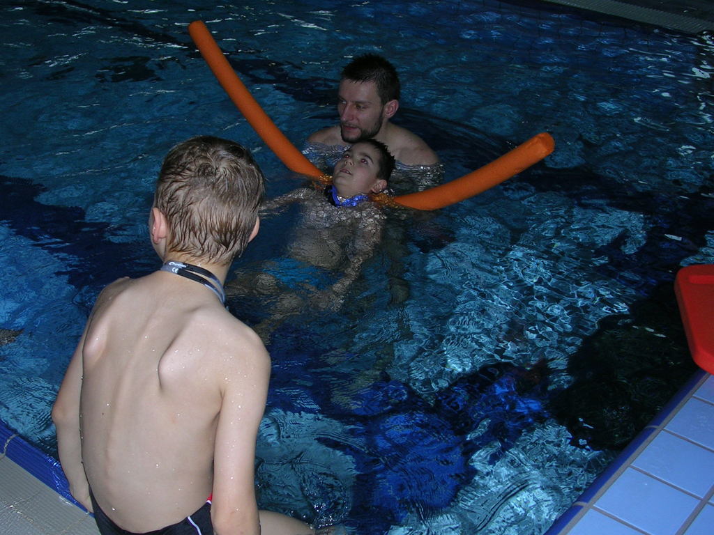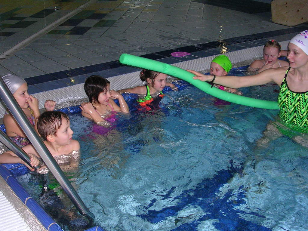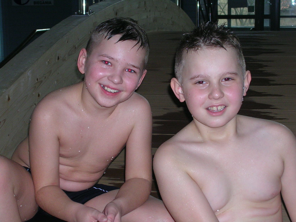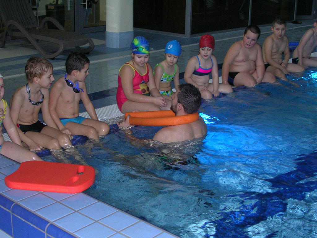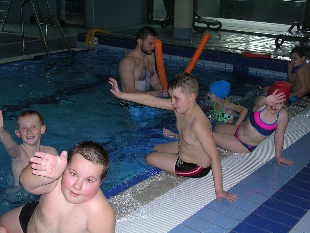 Nasi uczniowie, wraz z kolegami i koleżankami ze Szkoły Podstawowej w Koźmińcu, podczas lekcji pływania w Parku Wodnym "Planty" w Pleszewie.