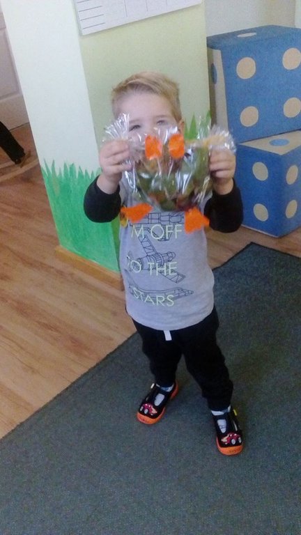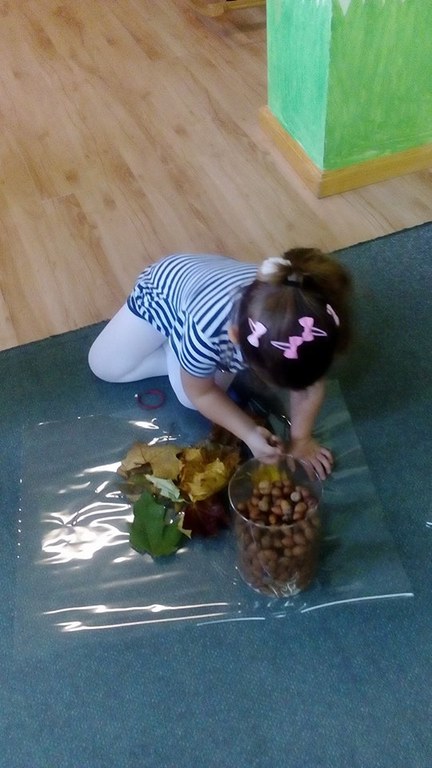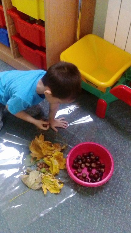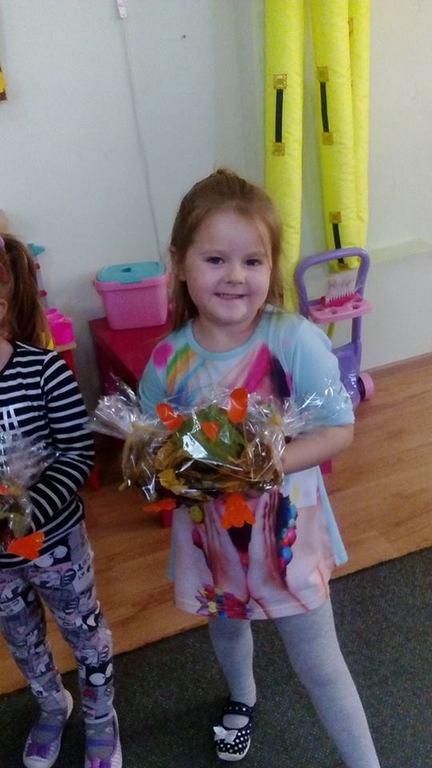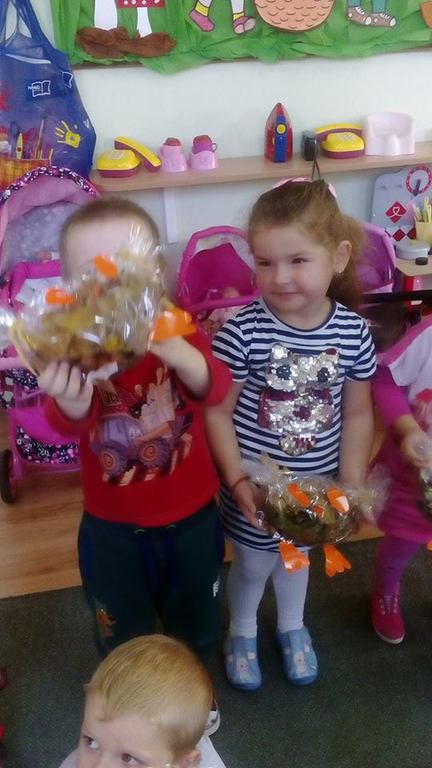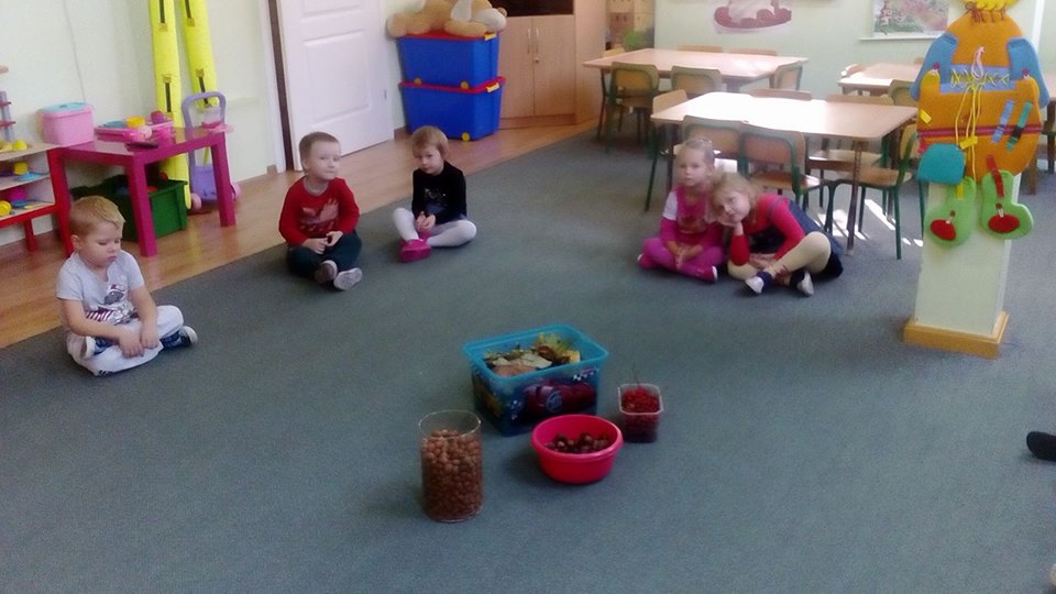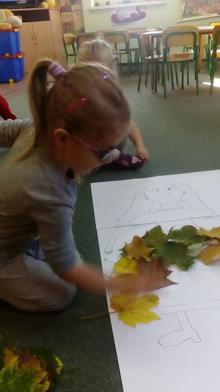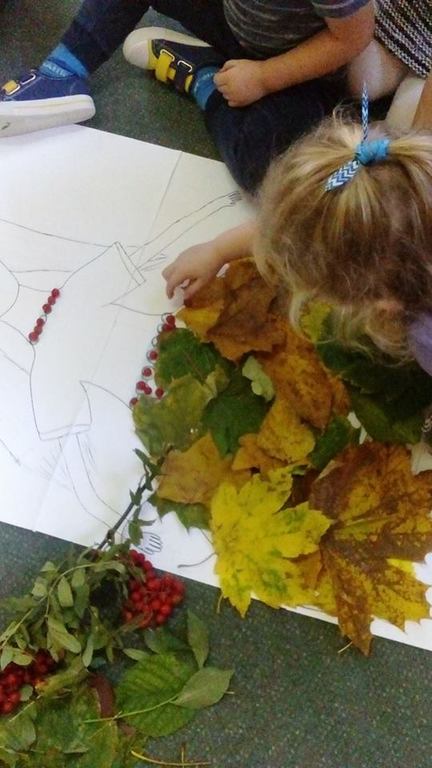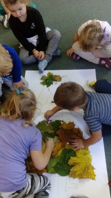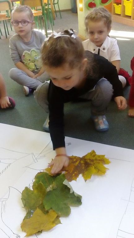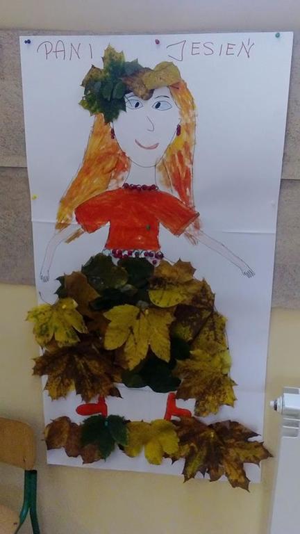 Nasze Krasnoludki nigdy się nie nudzą! Pani Daria Gauza cały czas dba o to by jej wychowankowie rozwijali swoją kreatywność. Tym razem dzieci wraz ze swoją panią stworzyły piękną pracę grupową- panią jesień, której suknię przyozdobiły jesiennymi liśćmi. Każde dziecko wykonało również pracę indywidualną z takich darów jesieni jak: liście, kasztany, jarzębina, żołędzie- powstała piękna sówka