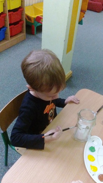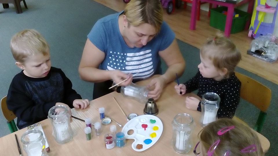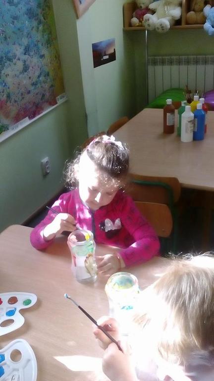 Dzieci wciąż marzą o tym, kim chciałyby zostać jak będą dorosłe. Aby ułatwić im wybór pani Daria Gauza, z pomocą wspaniałych rodziców, postanowiła zaprezentować dzieciom bliżej specyfikę kilku zawodów. Dlatego też, kolejnym przedsięwzięciem podjętym przez panią Darię było zorganizowanie spotkań z reprezentantami różnych zawodów, którzy przybliżyli dzieciom swoje interesujące profesje. Takie formy pracy w zakresie preorientacji zawodowej dostarczają dzieciom ogólnych wiadomości, rozbudzają różnokierunkowe zainteresowania, dostarczają wielu pozytywnych doznań, przeżyć, zachęcają do naśladowania, sugerują podejmowanie różnych działań, wzmacniają pozytywne uczucia. Dzieci w ten sposób wzbogacają swoją wiedzę na temat zawodów, poznają efekty pracy, narzędzia, charakterystyczny ubiór, dostrzegają i szanują pracę ludzi z bliskiego otoczenia. W czasie takich spotkań zdobyta przez dzieci wiedza inspiruje je do organizowania zabaw tematycznych, wykorzystując zdobyte doświadczenia. Jako pierwsze nasze dzieci odwiedziły mama Remika oraz mama Franka, które wykonują zawód - ZDOBNIK SZKŁA. Jest to wyjątkowy zawód wymagający ogromnej precyzji oraz talentu malarskiego. Mamy opowiedziały dzieciom na czym polega ich praca jak również zaprezentowały go w praktyce, oczywiście z udziałem dzieci. DZIĘKUJEMY BARDZO!!!