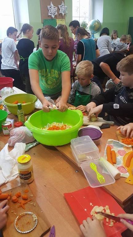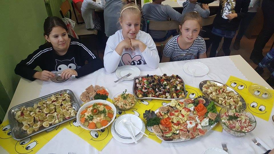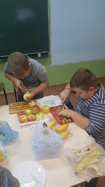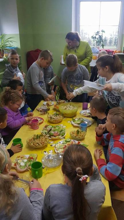 Kolorowe kanapki, rzeźby twarożkowe, owocowe i warzywne sałatki to tylko cześć pysznych potraw, które już dzisiaj czyli 8 listopada pojawiły się na szkolnych ławkach. Właśnie w Dniu Śniadanie Daje Moc wszyscy uczniowie szkoły wraz z wychowawcami i rodzicami obchodzili ogólnopolskie święto śniadania. Poza zjedzonym smacznym i zdrowym posiłkiem, dzieci dowiedziały się dlaczego śniadanie jest tak ważne dla prawidłowego rozwoju ich organizmu. Ponadto nauczyciele przypomnieli uczniom o 12 zasadach zdrowego odżywiania, które specjalnie na potrzeby programu zostały opracowane przez ekspertów Instytutu Matki i Dziecka. Po wspólnie zorganizowanym śniadaniu klasy dostały zdrowe jabłka .Serdecznie dziękujemy wszystkim rodzicom,dzieciom i wychowawcom za zaangażowanie . Ten dzień zapisał się w naszym kalendarium na stałe.