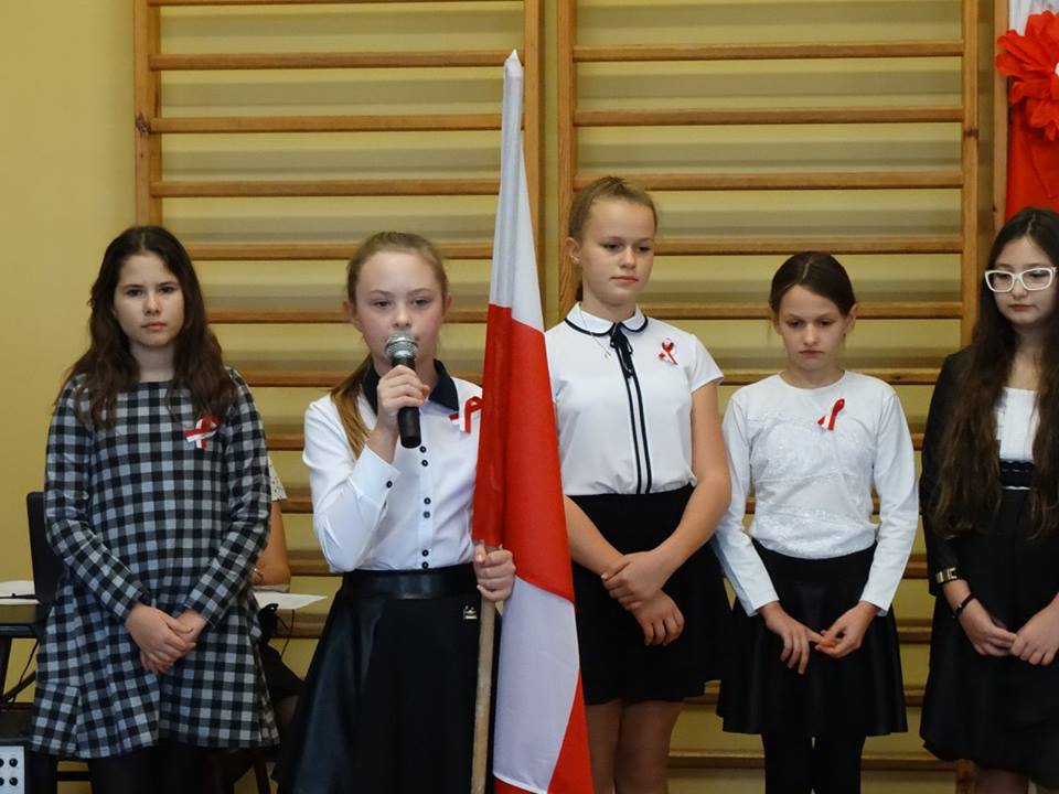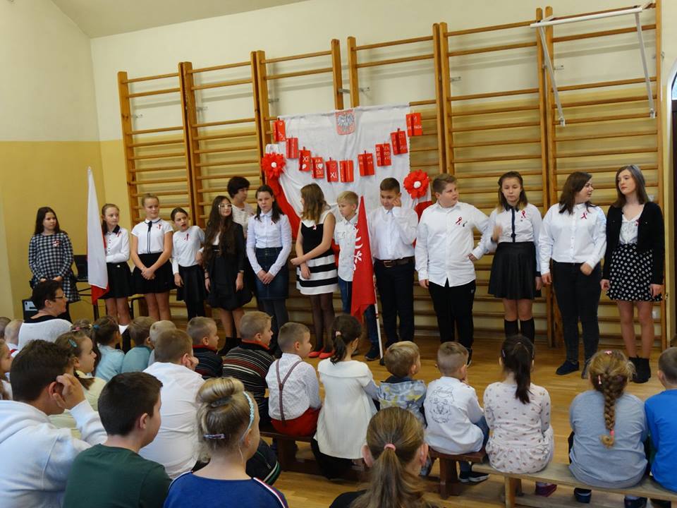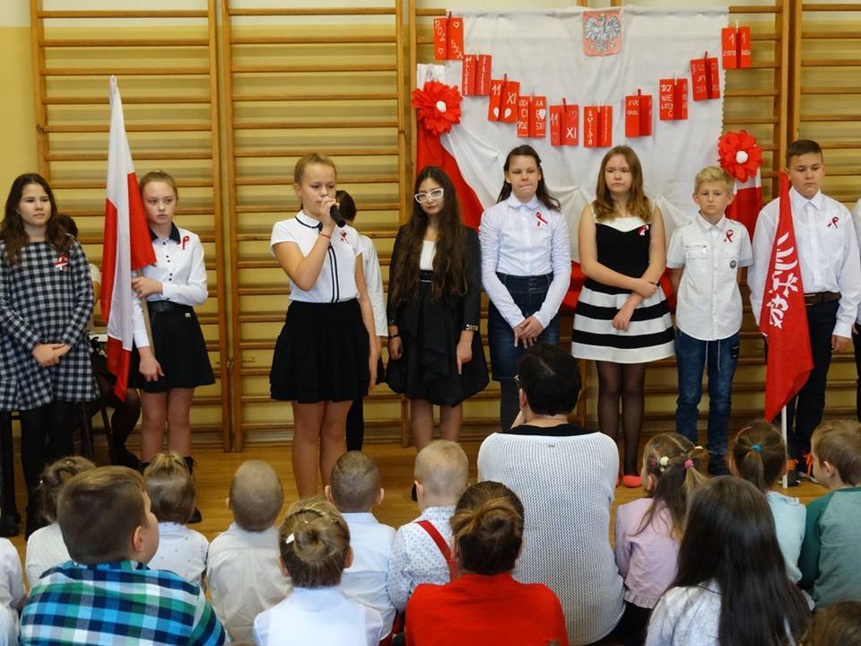 Co roku w naszej szkole obchodzimy uroczyście Święto Niepodległości. Tak było i dzisiaj. Uczniowie pod kierunkiem Pani Jolanty Furmankiewicz oraz Pani Beaty Matyjasik przygotowali piękną akademię, na której z powagą recytowali wiersze patriotyczne i śpiewali piosenki o Ojczyźnie. Obecnością swoją zaszczycili nas również Rodzice i Babcie, którzy przybyli obejrzeć występy swoich pociech, a także uczcić razem z nami to ważne święto. Na zakończenie, dzięki uprzejmości Pani Moniki Jakubowskiej, wszyscy mogliśmy skosztować pysznych rogali Marcińskich, które dla nas upiekła.
