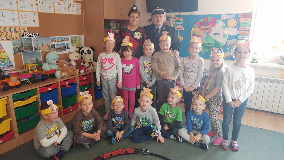 Z okazji Dnia Kolejarza, który obchodzimy 25 listopada zaprosiliśmy do naszego przedszkola pana Jana Auguścika. Gość pogadankę o pracy osób związanych z koleją rozpoczął od recytacji wiersza J. Tuwima „Lokomotywa”. Pokazał dzieciom jak wygląda mundur, czapka i jak na przestrzeni lat zmieniała swój wygląd. Najciekawsze dla dzieci okazały się rekwizyty niezbędne do pracy na kolei: „lizak”, latarka, kasownik, gwizdek, radiotelefon czy przenośna kasa. Poinformował dzieci o zasadach bezpiecznego zachowania się na peronie oraz w czasie podróży pociągiem. Serdecznie dziękujemy panu Janowi za udział w zajęciach gr. 0 oraz za tak ciekawe przedstawienie na czym polega zawód -kolejarz.