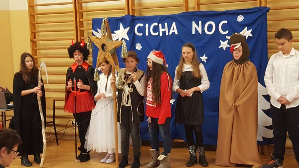 Dzisiaj tj. 21 grudnia 2017r. w naszej szkole odbyły się Jasełka...nie były to jednak tradycyjne Jasełka Bożonarodzeniowe, tym razem uczniowie klasy V oraz VI przedstawili naszej społeczności szkolnej ich ludową wersję, w której nie zabrakło kolędników, aniołów i diabełków, jak również tura i śmierci z kosą. Jasełkowe przedstawienie było bardzo ciekawe i rozbawiło całą publiczność, a kolędy oraz świąteczne piosenki wzruszyły.