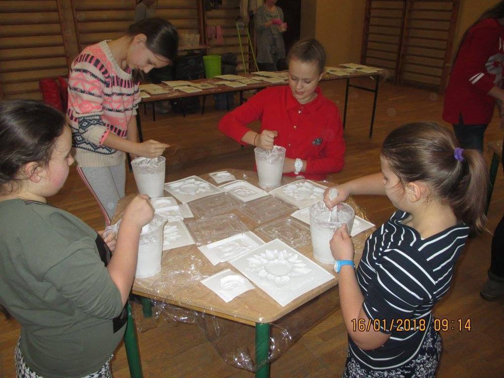 Dzieci podczas zajęć poznaly cały proces powstania odlewów począwszy od przygotowania masy gipsowej po suche odlewy . Warsztaty gipsowe to forma edukacji pozwalająca na rozwijanie zdolności plastycznych , rozwijają sprawność manualną orientację przestrzenną , uczą kreatywnego myślenia a także są alternatywą i pomysłem dla dalszych zajęć edukacyjnych .
