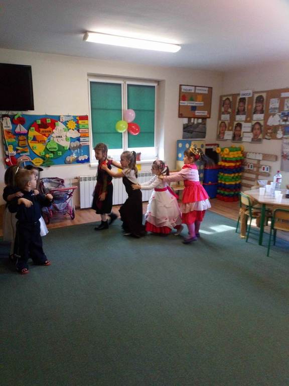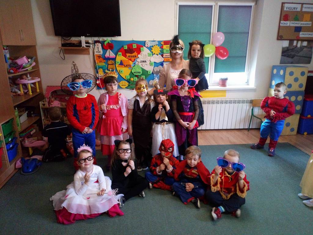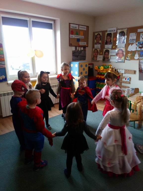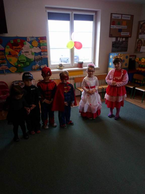 Tego dnia już od rana w przedszkolu pojawiały się kolorowe postacie. Dzieci przebrane były za bohaterów znanych bajek, w salach przedszkolnych można było spotkać wróżki, królewny, kotki ,policjantów, Spider-Mana, Supermena ... nie sposób zliczyć i wymienić tych wszystkich postaci. Rozpoznać dzieci było bardzo trudno...
