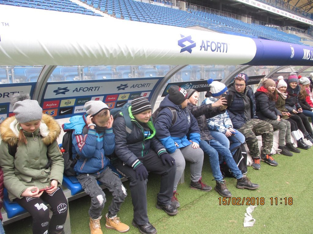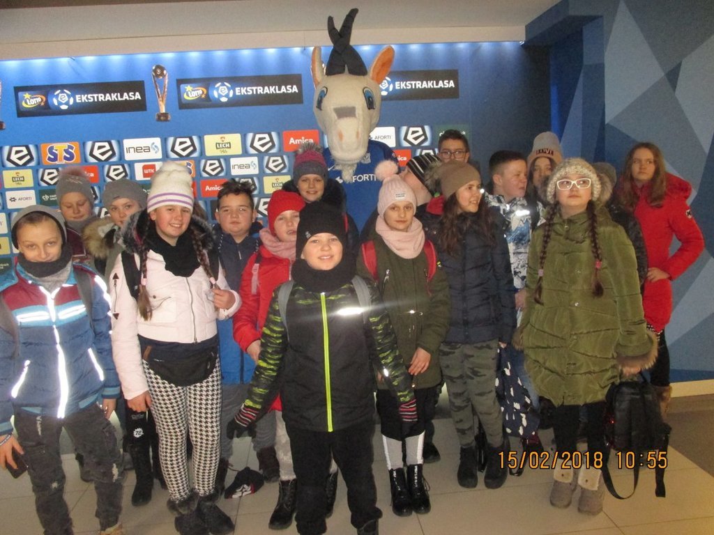 15 luty 2018r. był dla uczestników wycieczki do Poznania długo wyczekiwanym dniem, bowiem zaplanowane było między innymi zwiedzanie zakamarek INEA Stadionu, które na co dzień niedostępne są dla kibiców. Widzieliśmy: Hol Główny - Recepcję, Salę Konferencyjną, na której mogliśmy poczuć się jak prawdziwi piłkarze i dziennikarze, Korytarz Sław, Szatnię Gości, Tunel-Strefę Zero, poziom boiska wraz z ławkami rezerwowych, Lożę Prezydencką, Salę Legend, czy Trybunę Prasową. Udało nam się również dostrzec przebiegających przez hol na trening piłkarzy Lecha. Wielką frajdą był także przejazd pociągiem i tramwajem – nie wszyscy bowiem jechali wcześniej tego typu środkami lokomocji.