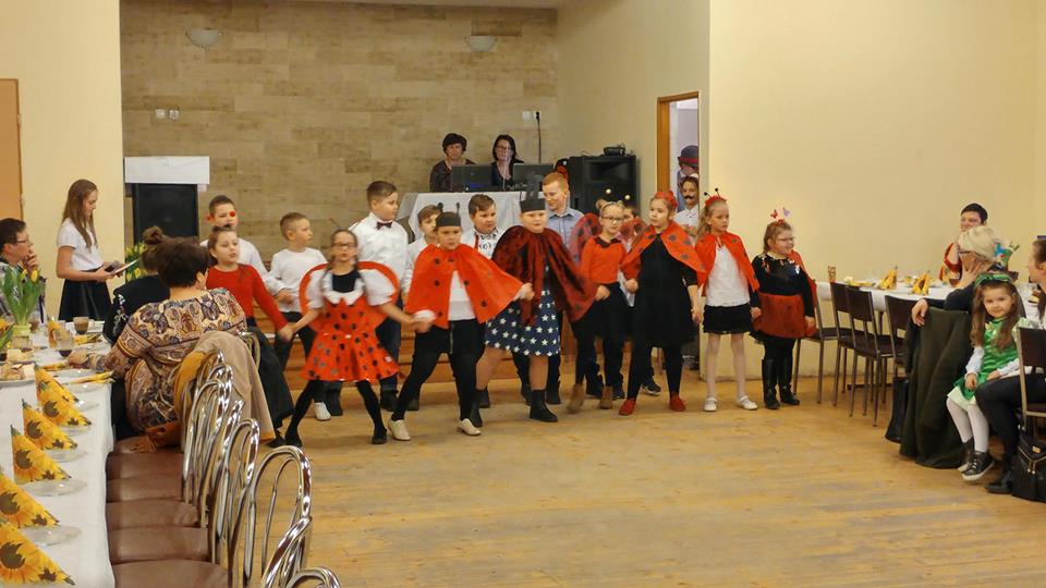 Dzień Kobiet w naszej szkole obchodziliśmy bardzo uroczyście. Z tej okazji na sali w Karmińcu odbył się spektakl przygotowany przez naszych wychowanków. Na samym początku po życzeniach Pani Dyrektor, Burmistrza oraz sołtysa Karmina wystąpiły przedszkolaki z doskonałą ,,Rzepką" a na końcu pokazali się uczniowie szkoły. Panie przecierały oczy ze zdziwienia, widząc swoje córki odświętnie odziane i pod krawatem. Za to chłopcom niczego nie brakowało ,ażeby pomylić ich z kobietą. Nie brakowało też kwiatów i słodkich upominków. Występ bardzo podobał się wszystkim zgromadzonym w sali, a uśmiechnięte twarze pań i dziewczyn przekonywały, że miłe życzenia zdrowia, szczęścia, radości oraz mniej zmartwień na głowie sprawiły wszystkim wiele przyjemności. Serdecznie wszystkim DZIĘKUJEMY za pomoc w organizacji. Myślę, że ta uroczystość wpiszę się na stałe do naszych imprez.