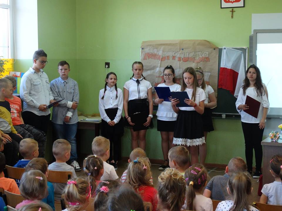 Aby upamiętnić ten doniosły fakt w historii Polski, uczniowie klasy V przygotowali część artystyczną pod kierunkiem Marty Kuźmik. Apel rozpoczęto odśpiewaniem hymnu państwowego. Zaprezentowano także historię konstytucji. Uczniowie recytowali wiersze i śpiewali pieśni o tematyce patriotycznej. Wszystkim obecnym na apelu uświadomiono, że warto i należy pielęgnować patriotyzm w nas samych każdego dnia. ️