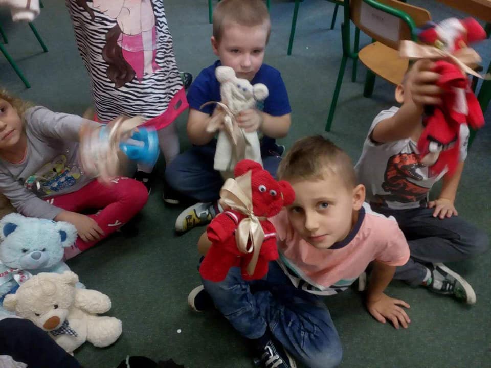 Również w grupie Kubusiów hucznie obchodzono Dzień Pluszowego Misia. Każdy po kolei przedstawił misia przyniesionego z domu. Potem dzieci z Panią Darią opowiadały o misiach celebrytach, znanych z bajek 😉. Był czas na zagadki, zabawę "Stary niedźwiedź...", śpiewanie i tańczenie przy piosence "Pluszowy miś" i malowanie misia. Największą frajdą było własnoręczne wykonanie misia z ręcznika. Na zakończenie dnia pełnego wrażeń pojawił się tort - miś od pana Roberta Pachciarka. Pychota! Serdecznie dziękujemy!