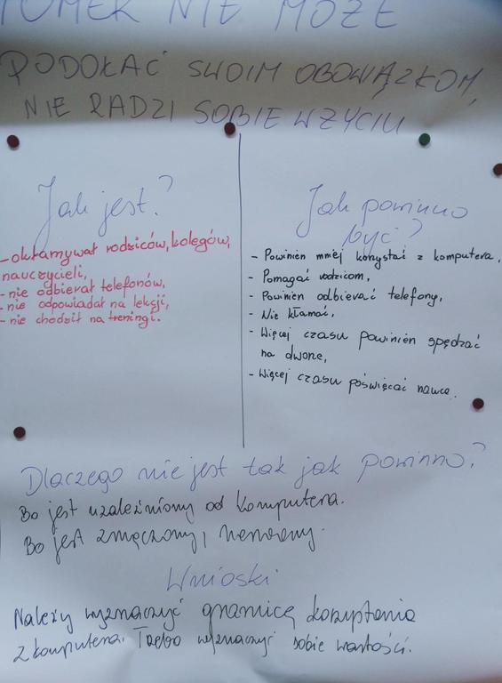 W ubiegłym tygodniu klasy IV-VI wraz z panią Renatą Kryś wzięły udział w programie Dzień Bezpiecznego Internetu. Wszystkie klasy na lekcjach informatyki przypomniały sobie zasady bezpiecznego korzystania z internetu. Lekcje informatyki wyglądały trochę inaczej niż zwykle. Klasa szósta pracowała metodą metaplanu, a na koniec zajęć zagrała w paintball. W klasie siódmej uczniowie bawili się w lustro, a klasa czwarta przesłała sobie iskierkę przyjaźni. Uczniowie odgrywali scenki dramowe, przeprowadzili wywiad dotyczący korzystania z komputera. Większość ankietowanych wykorzystuje komputer do gier, są jednak tacy, którym jest on potrzebny do pracy i wyszukiwania informacji. Wszyscy zgodnie stwierdzili, że zdecydowanie lepsza zabawa jest w realu.