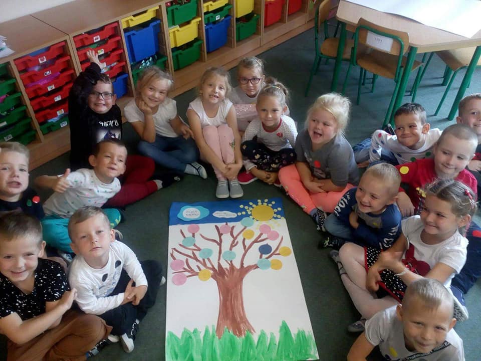 słuchały także opowiadania o dziewczynce o imieniu Vashti. Historia tej dziewczynki pokazuje, że każdy z nas ma jakieś ukryte zdolności i talenty! Trzeba uwierzyć w swoje możliwości. Dzieci stworzyły drzewo talentów.
