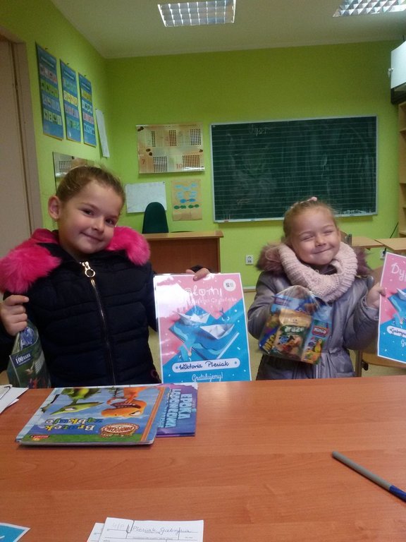 Przedszkolaki, które dziesięć razy odwiedziły szkolną bibliotekę, wypożyczyły książki i otrzymały specjalne naklejki, zostały nagrodzone dyplomem i upominkiem w postaci kolorowej książeczki i słodyczy. Życzymy wytrwałości! Brawo!