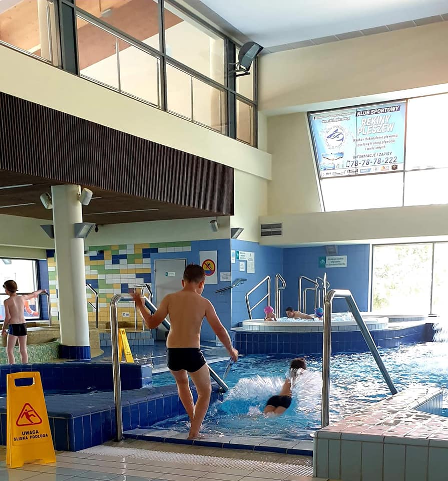 Projekt "Umiem pływać". Dzieci z klas 1-3 z ogromną radością biorą udział w zajęciach na pleszewskim basenie. Park Wodny "Planty" Sport Pleszew oferuje mnóstwo atrakcji. Uczniowie podczas 10 wyjazdów będą uczyć się podstaw pływania pod fachowym okiem instruktorów