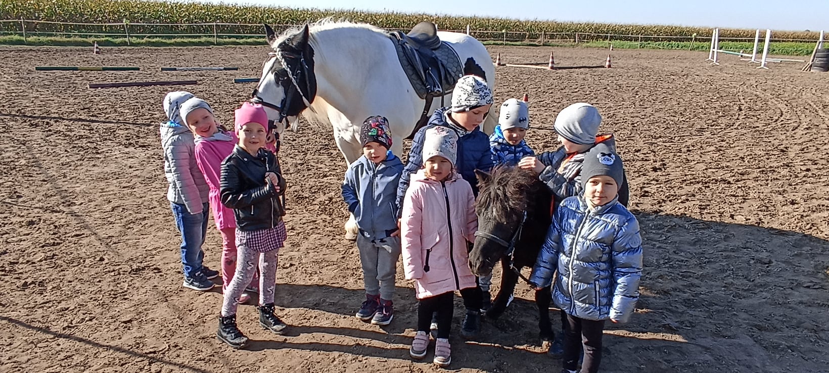 Przedszkolaki jeździły na koniu lub na kucyku, potem bryczką.