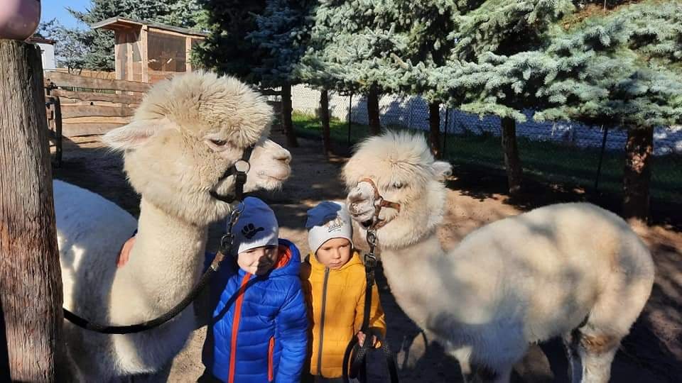 @Spacer z alpaką to super miejsce gdzie można dowiedzieć się ciekawych rzeczy o alpakach. Nakarmić je, przytulić i oczywiście pospacerować z nimi. Dzieci bardzo chętnie poznały Antka, Śnieżkę, Misia i pozostałych mieszkańców zagrody: kucyki, owce, króliki i...kolorowe, hałaśliwe papugi.