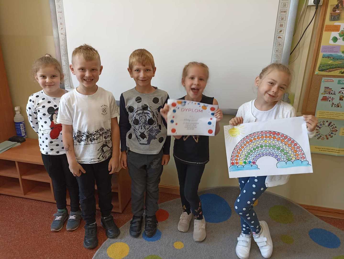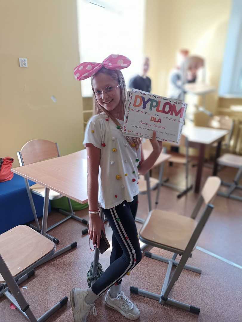 Wszystkie klasy otrzymały dyplomy za udział i słodkie przekąski, a wykonane osobiście kropki w ubraniu były premiowane nagroda książkową.