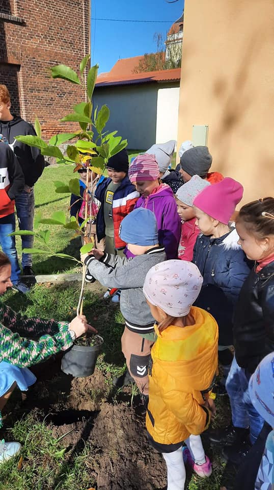 Najpierw wiele ciekawych informacji i zajęć o drzewach, a potem wspólne sadzenie przygotowanej sadzonki magnolii. Będzie pięknie kiedy zakwitnie wiosną!